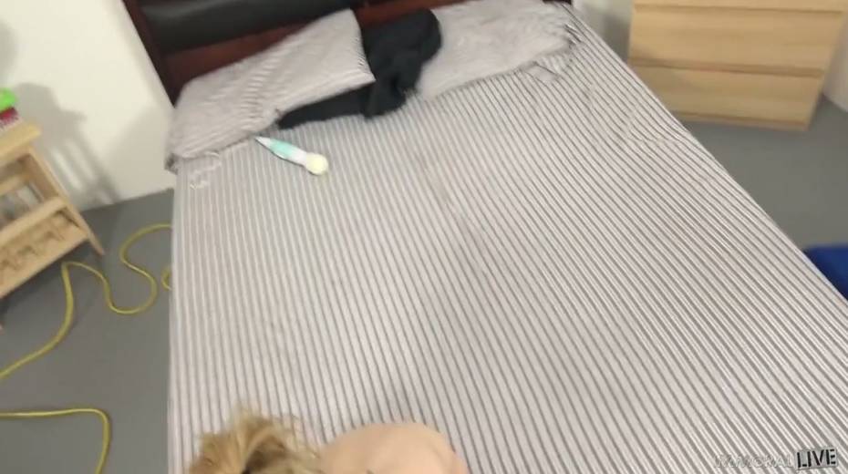 Blond babe Angel Smalls stimulates her clit during hot sex