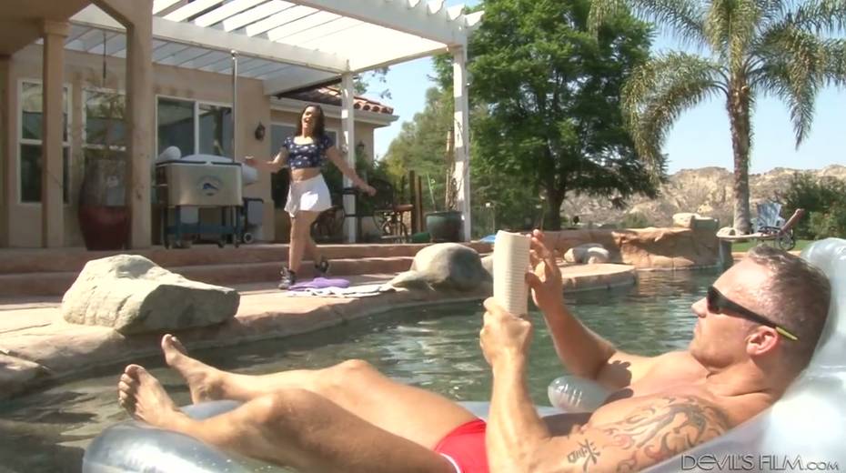 Fabulous babe Kimber Woods gets rammed hard by the poolside
