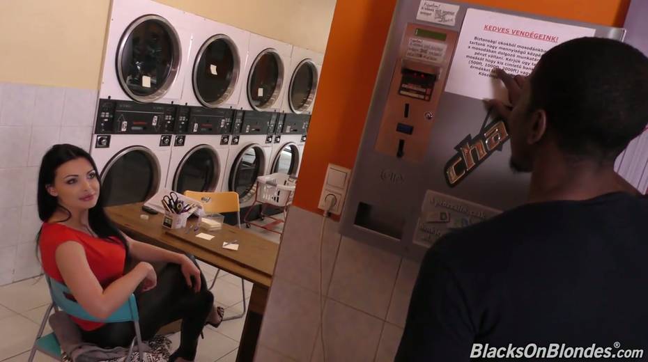 Fake tittied whore Aletta Ocean has interracial anal sex in the laundry