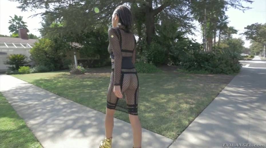 Hardcore pussy pounding for trashy looking whore in fishnets Amber Faye