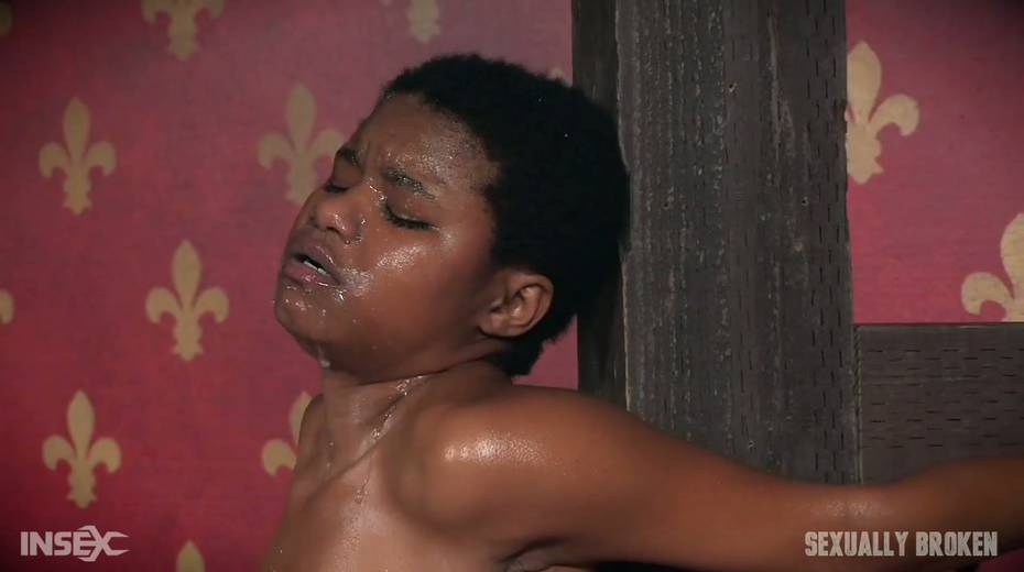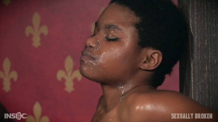Busty mistress wearing strapon punishes tied up black whore Kahlista Stonem