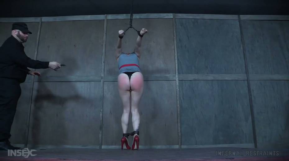 Yummy chick Amy Nicole is tied up and suspended in the basement