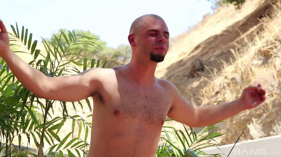 Stunning porn model Anissa Kate is fucked outdoor by two hot tempered studs