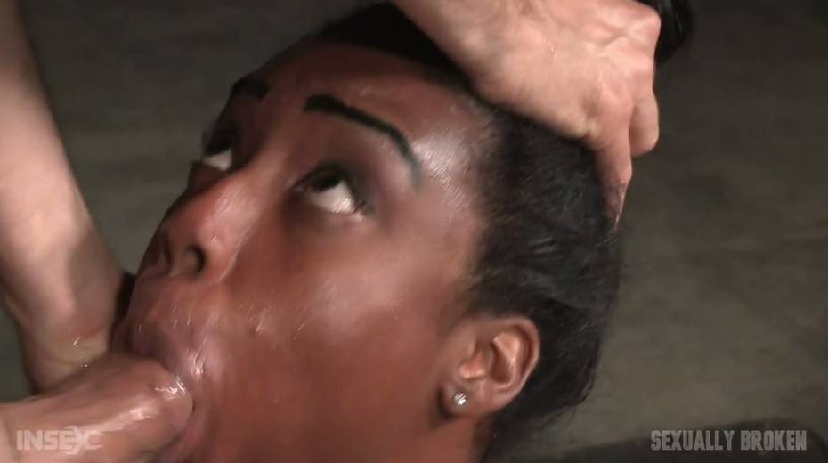 Bondage black chick Lisa Tiffian is fucked in her throat by crazy white stud
