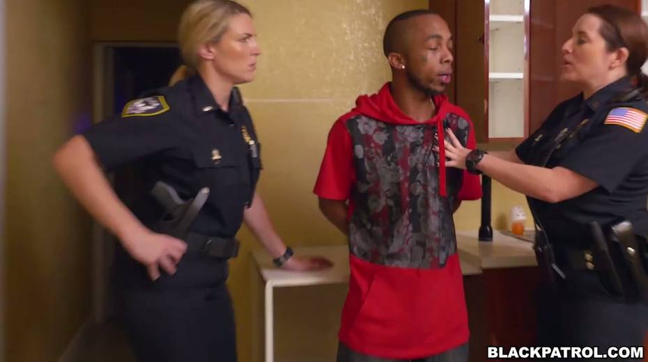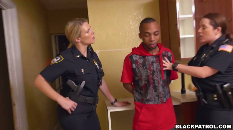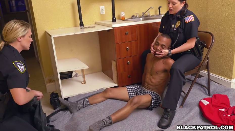 Two policewomen fuck one arrested BBC and sit on his face one after another