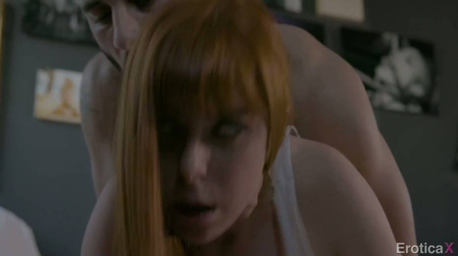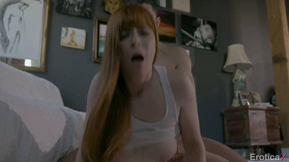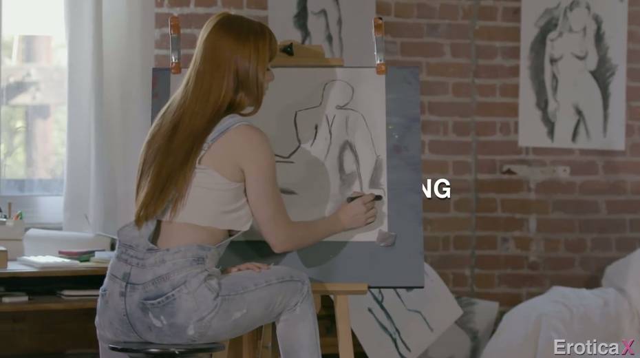 Red haired artist Penny Pax sucks hard dick of one naked model