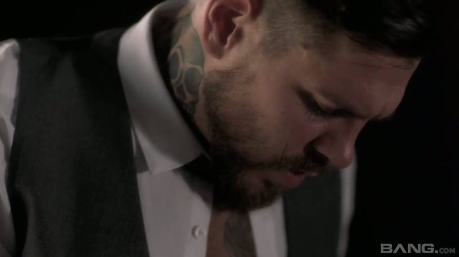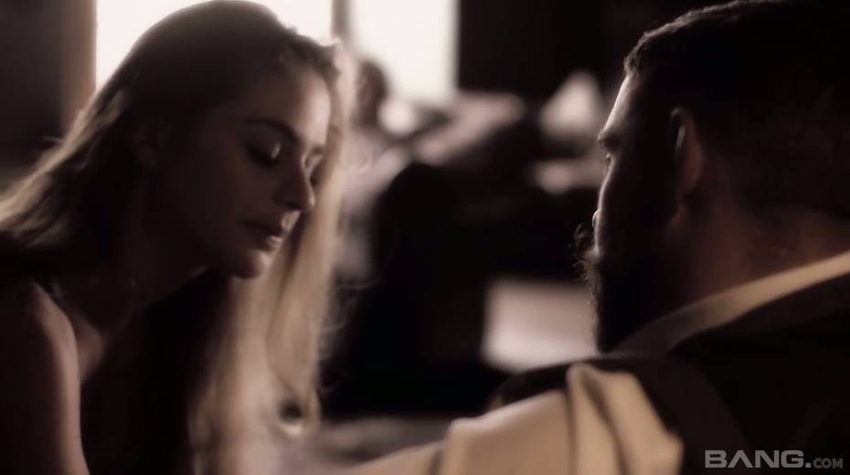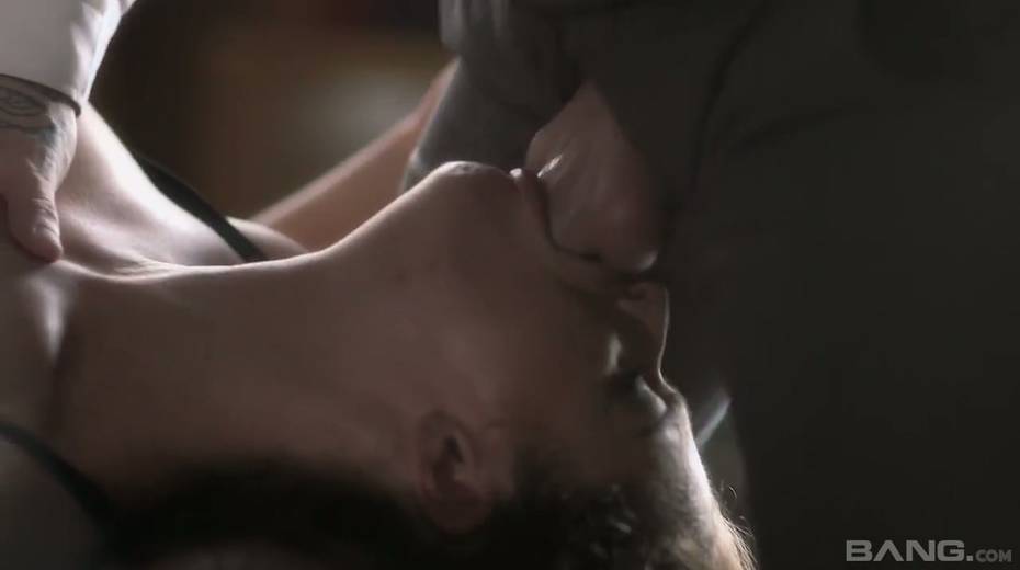 Sexy babe in lingerie Cathy Heaven is fucked by two clothed dudes