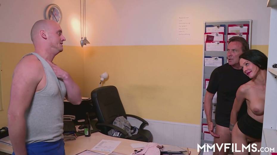 Slim secretary Anna Von Freienwalde gets double penetrated in the office