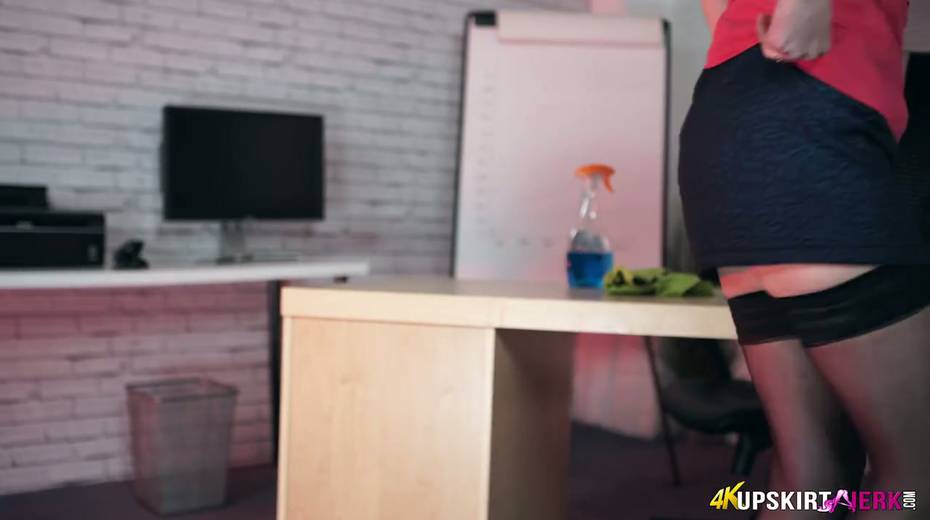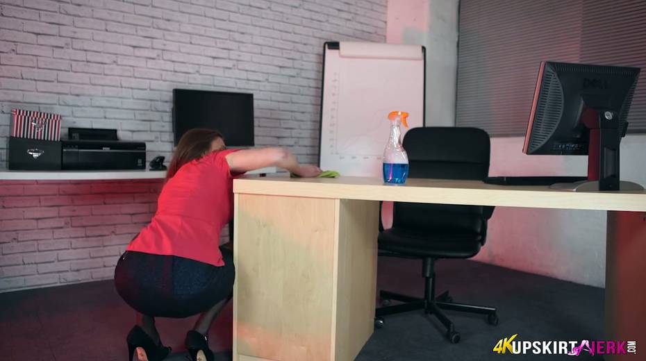 Young secretary Honour May shows her yummy pussy spreading legs wide open