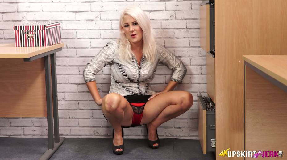 Sex-hungry secretary Lu Elissa takes off panties standing on all fours