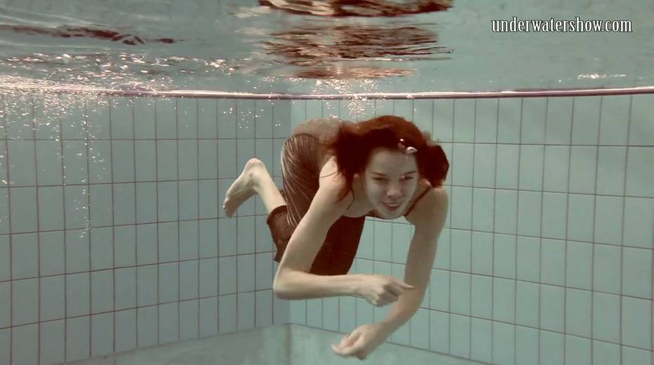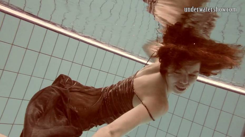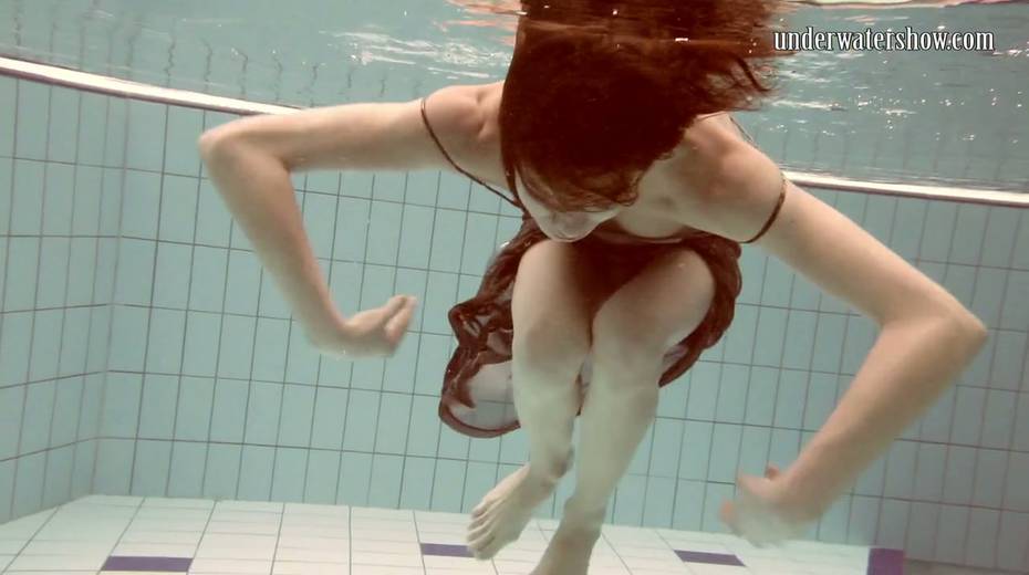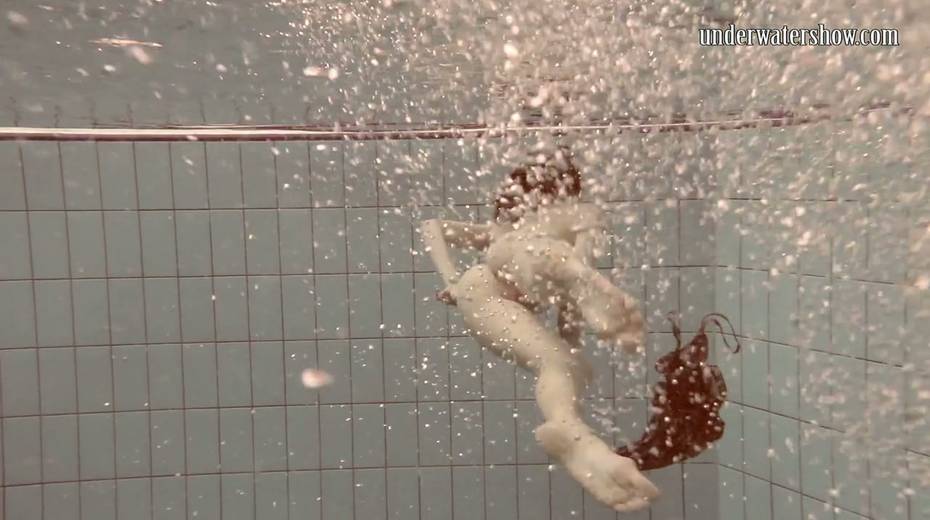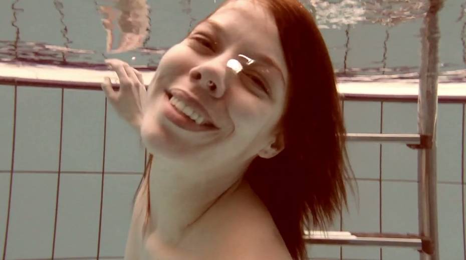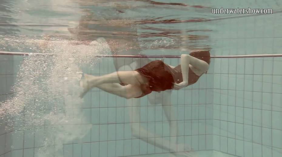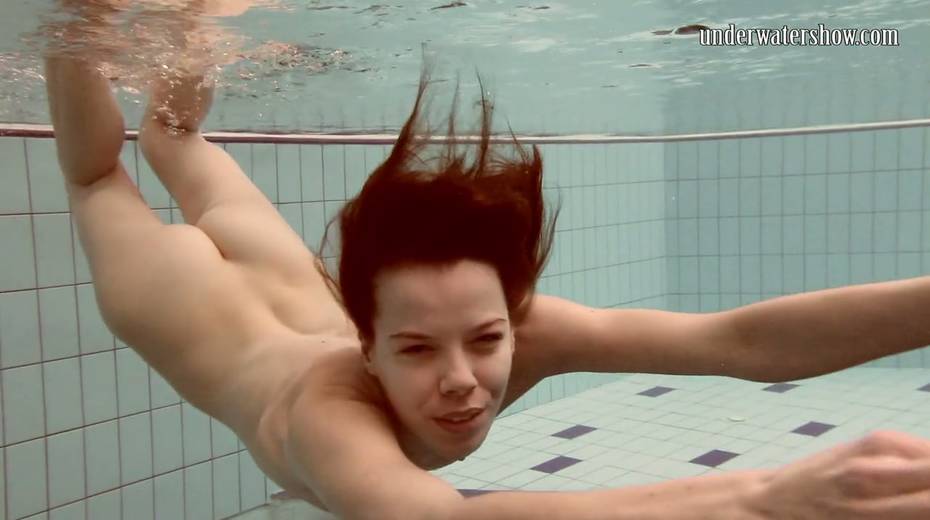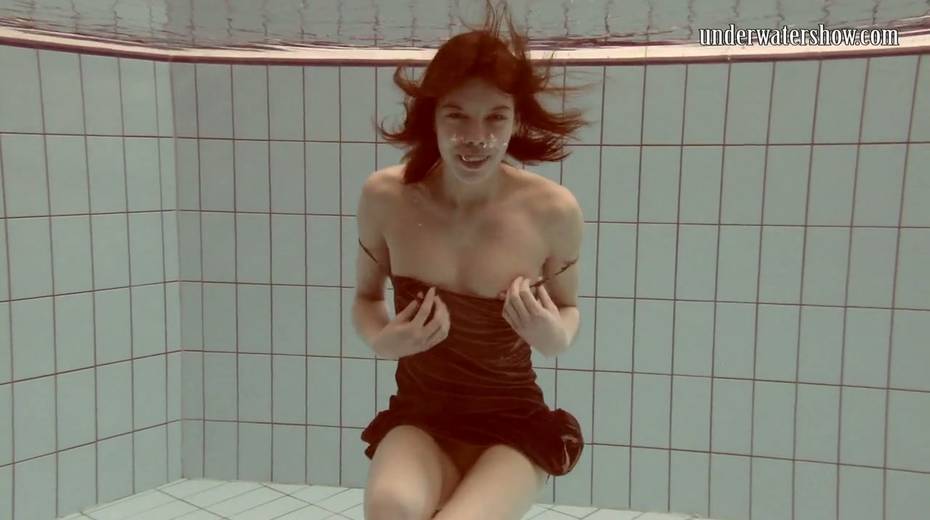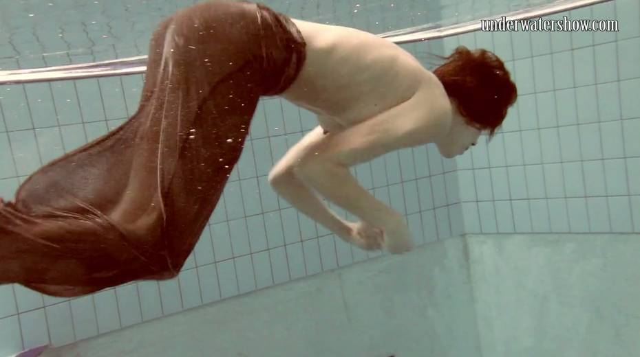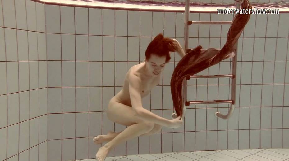 Ginger hottie Gazel Podvodkova shows her flat tits and pussy under the water