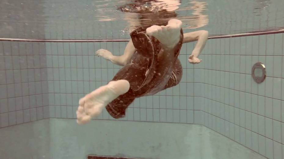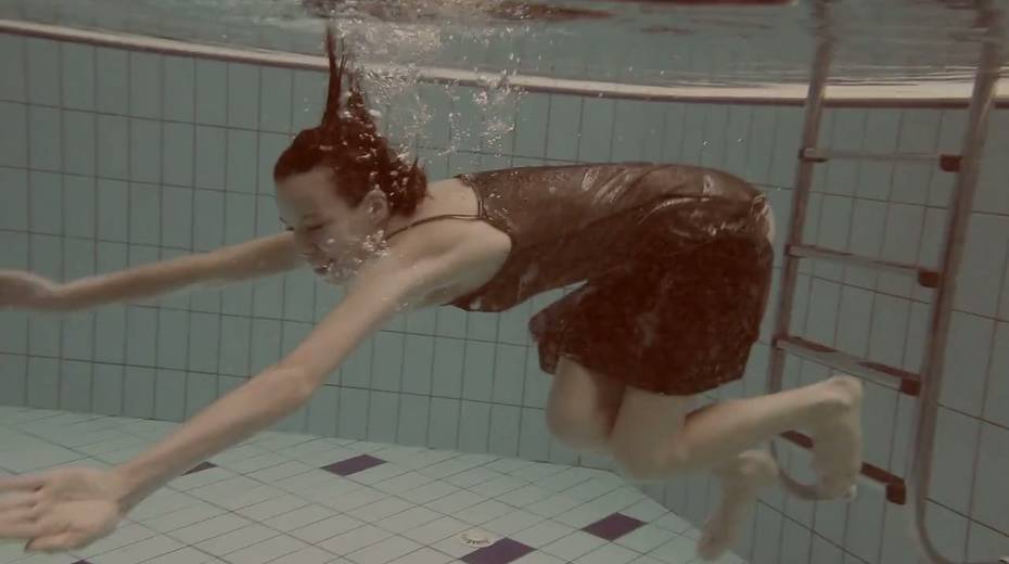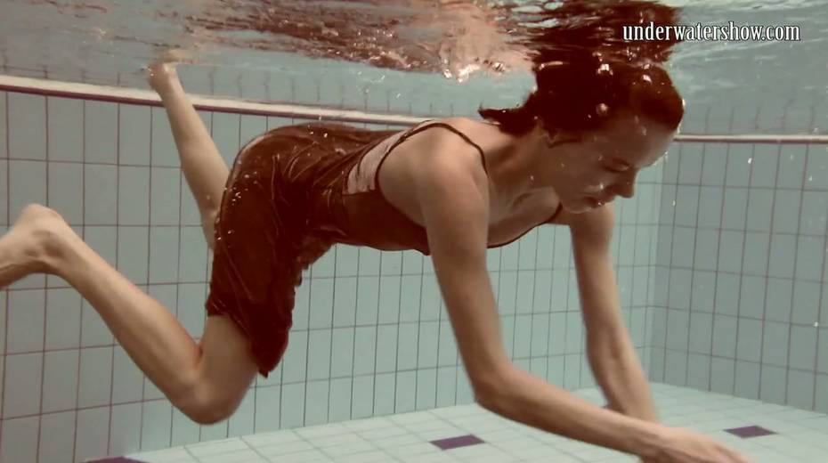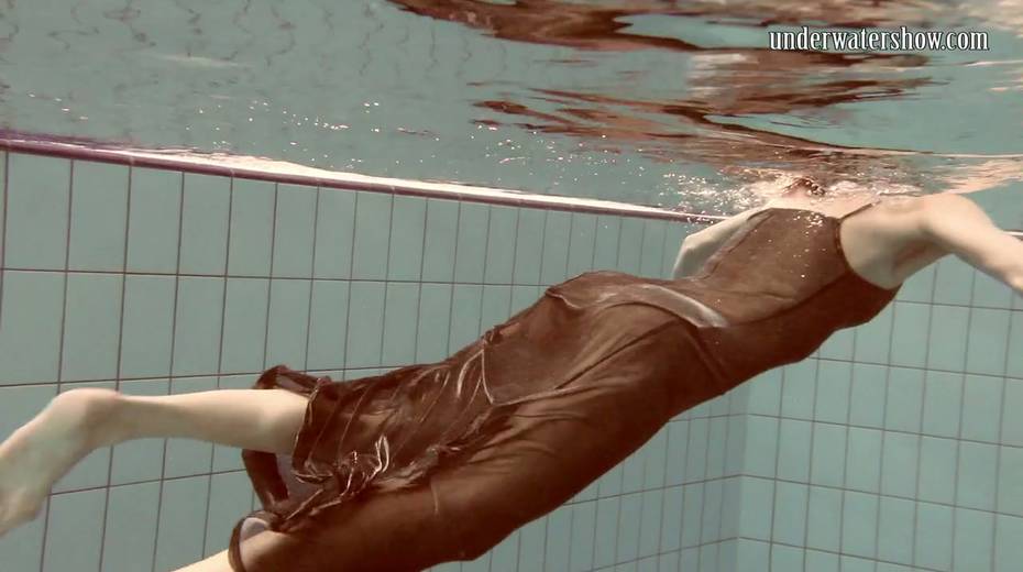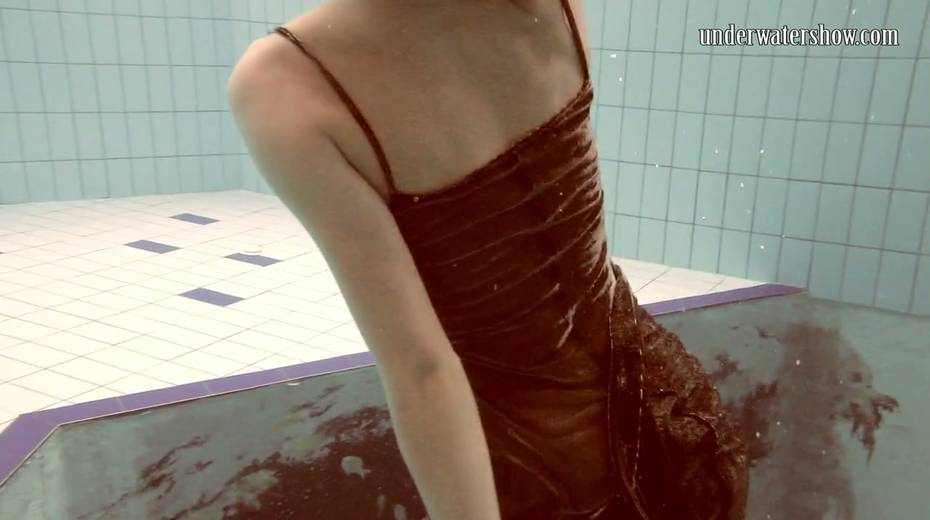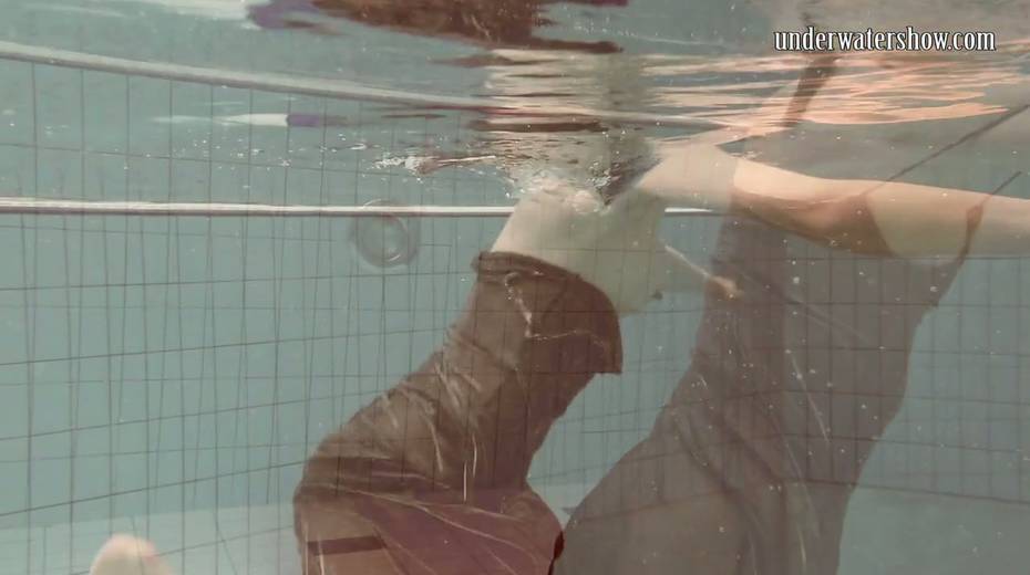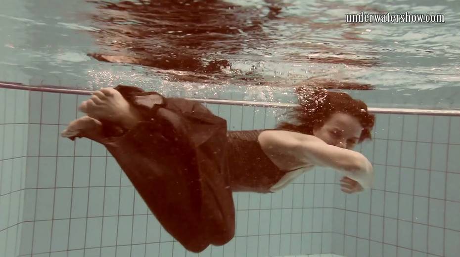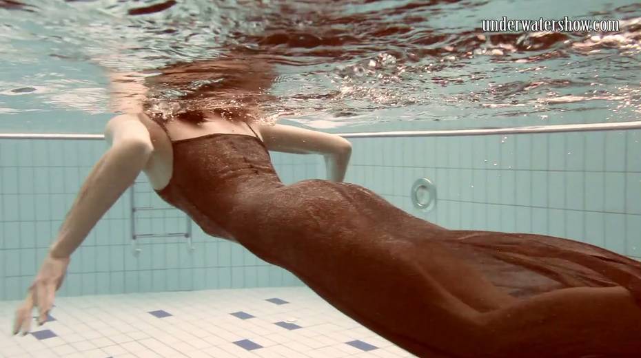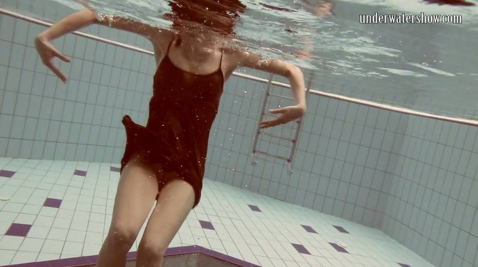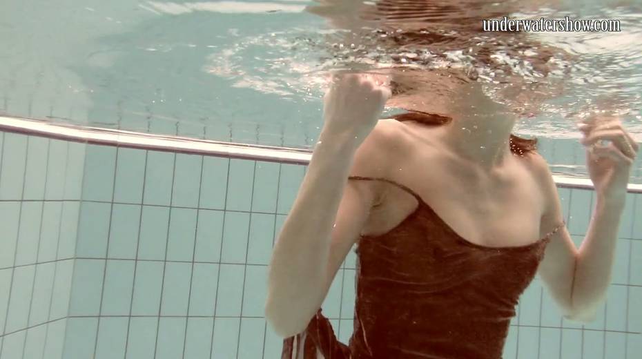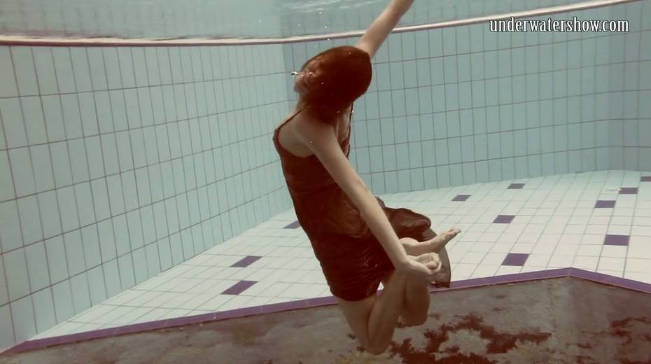Ginger hottie Gazel Podvodkova shows her flat tits and pussy under the water