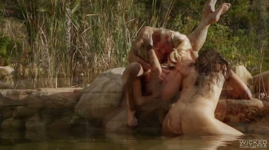 Delicious milf Allie Haze and her naughty girlfriends make love on the pond