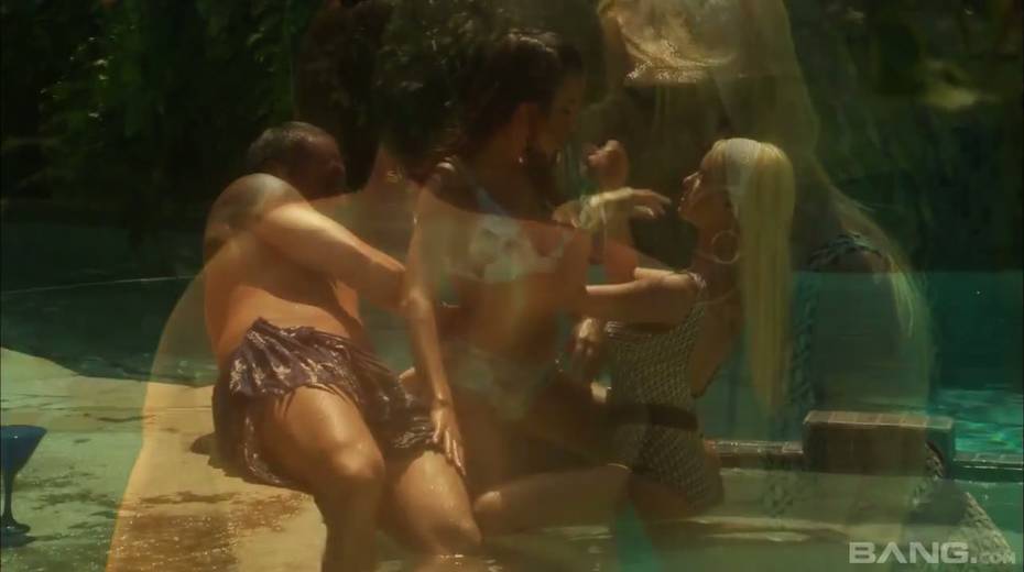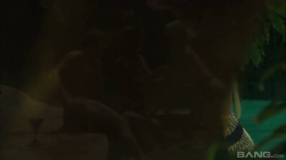 Adorable whore Olivia Del Rio and her kinky girlfriend fuck one dude by the pool side