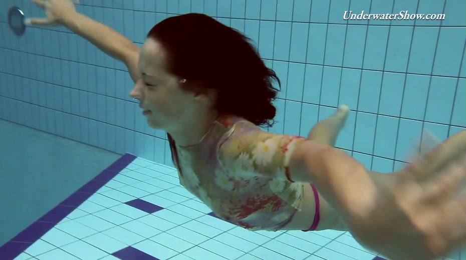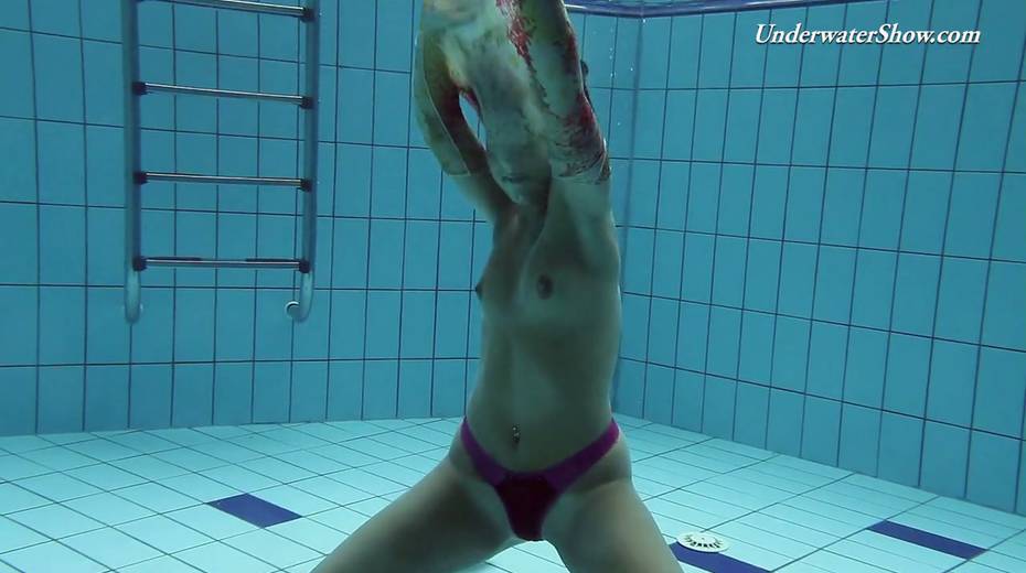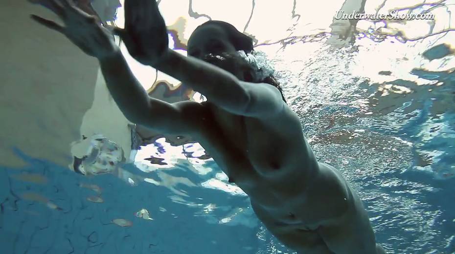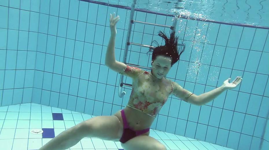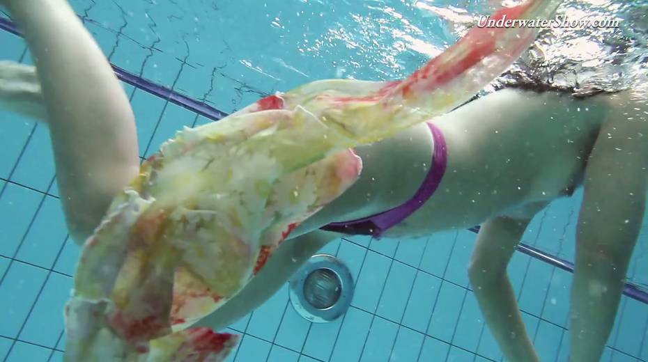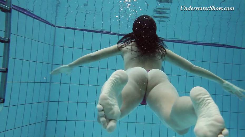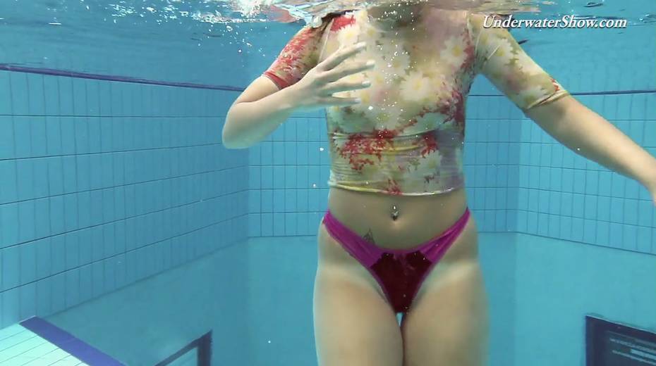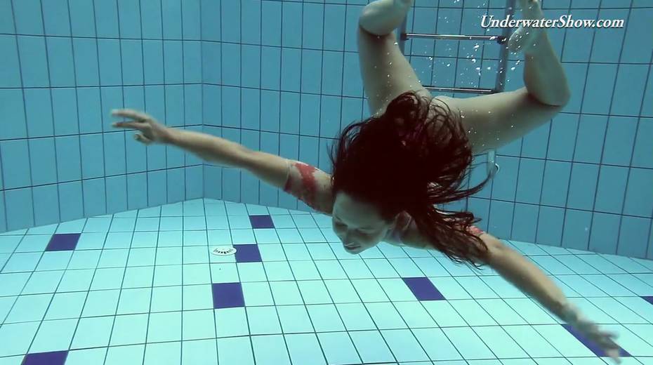 Hot swimming chick Krasula Fedorchuk takes off clothes under the water