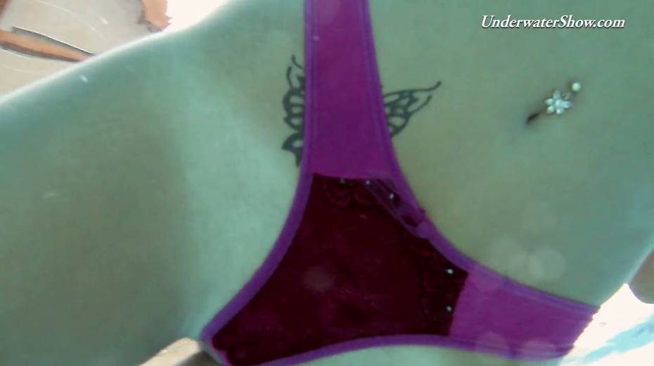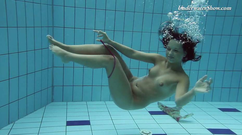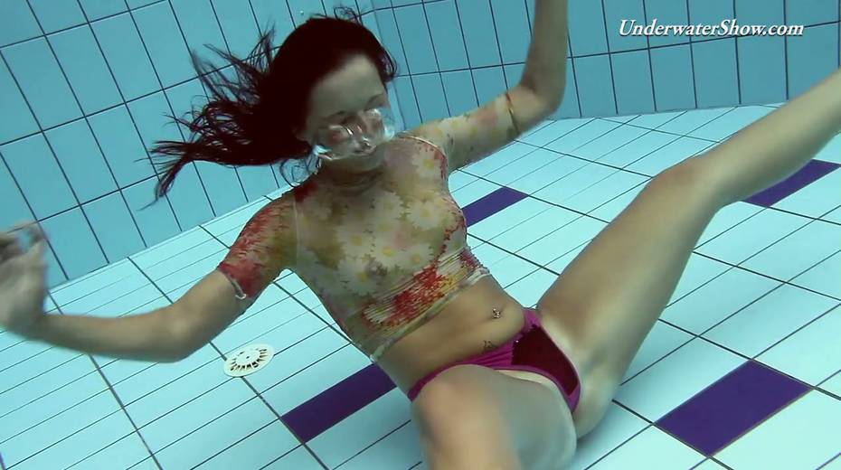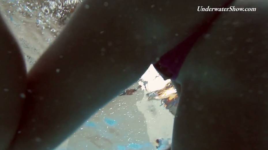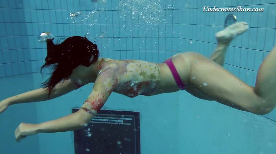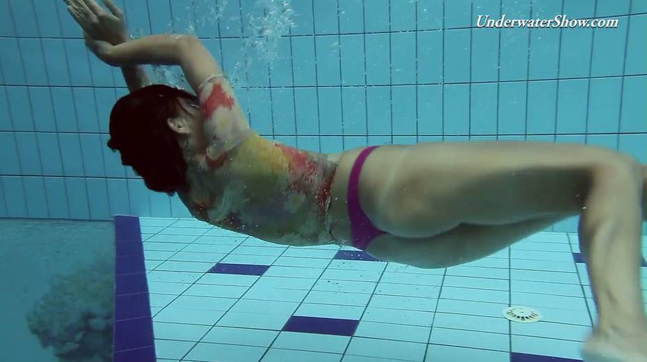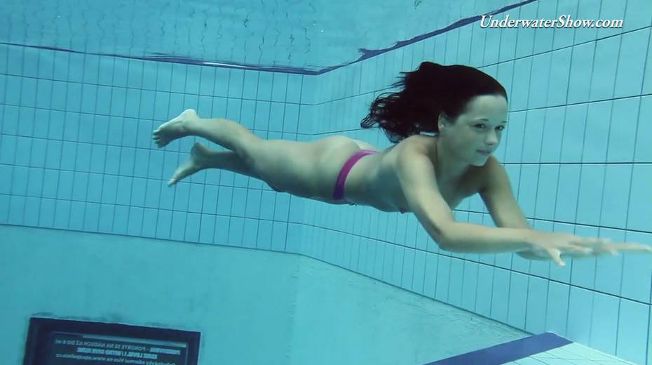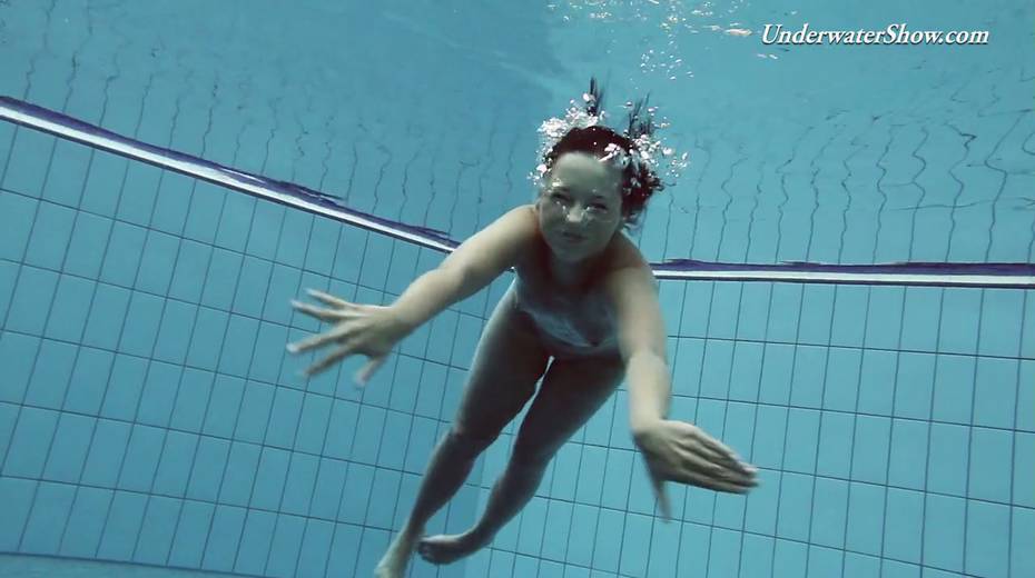 Hot swimming chick Krasula Fedorchuk takes off clothes under the water