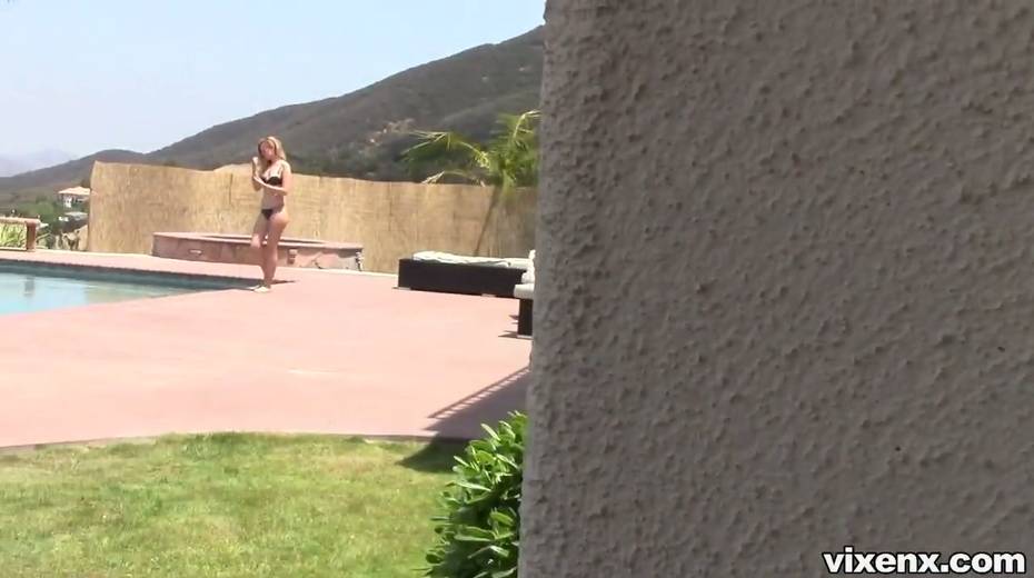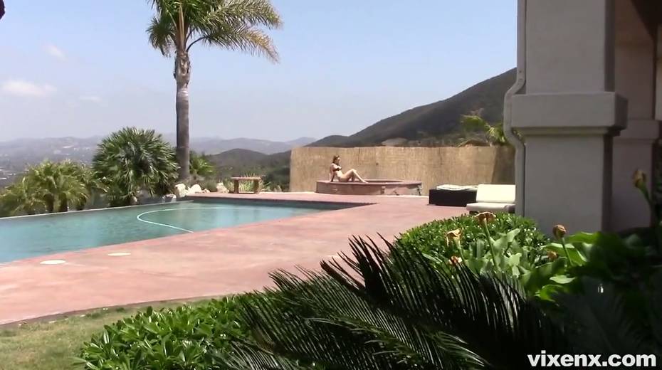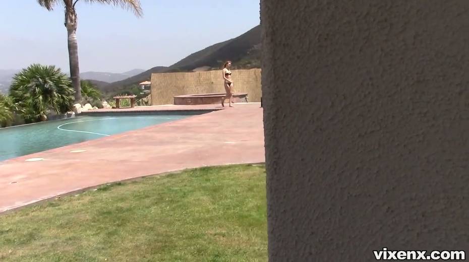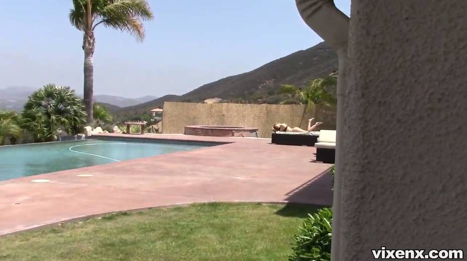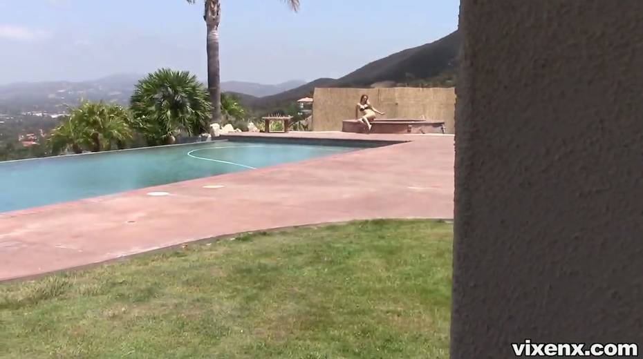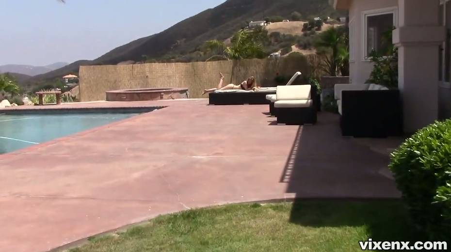 Pretty babe Lyra Law is sucking dick on a pov camera after taking a sunbath