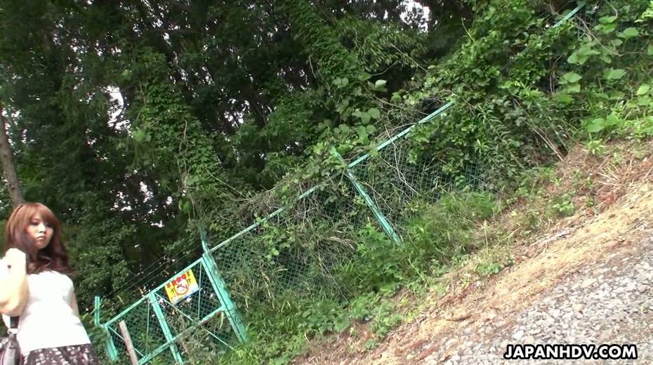 Yummy Japanese babe Eri Makino is pleasing her nasty pussy outdoor