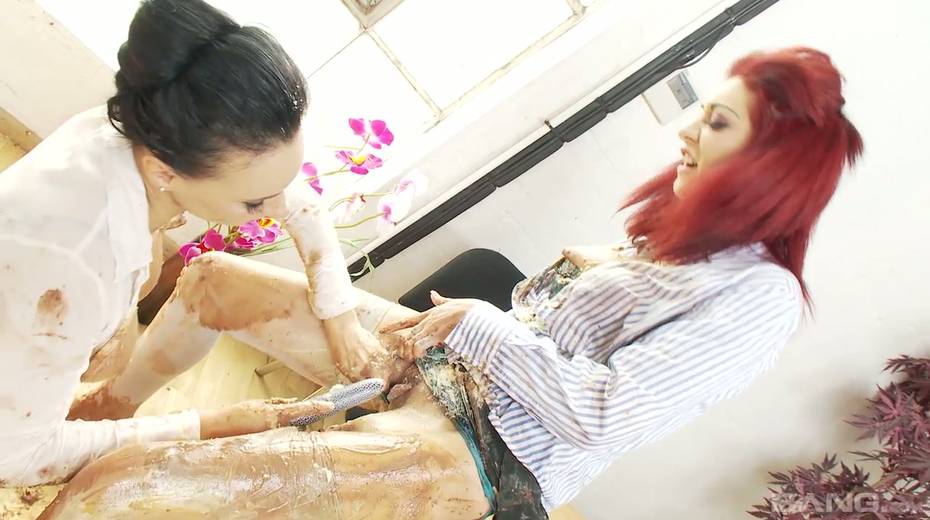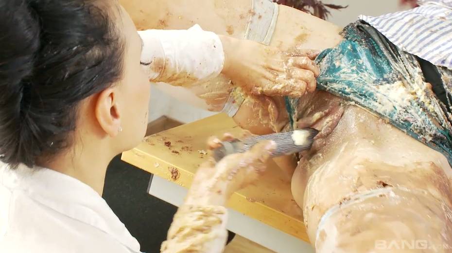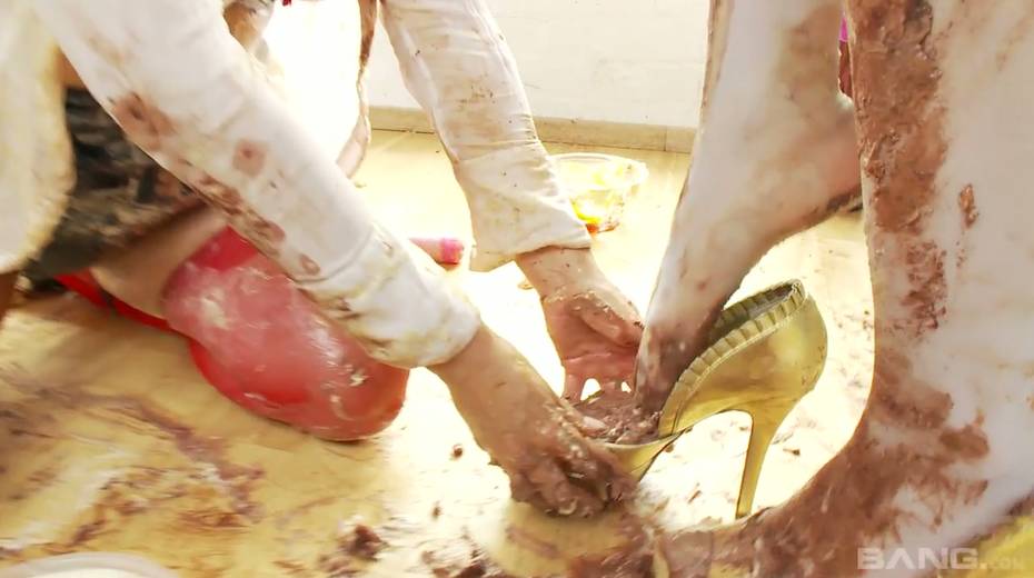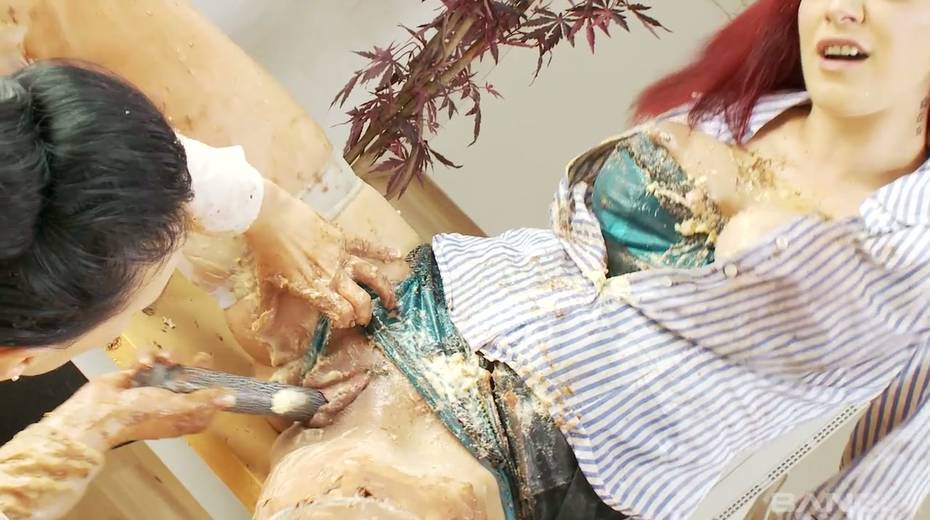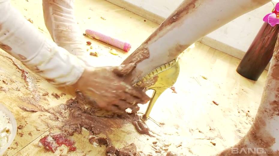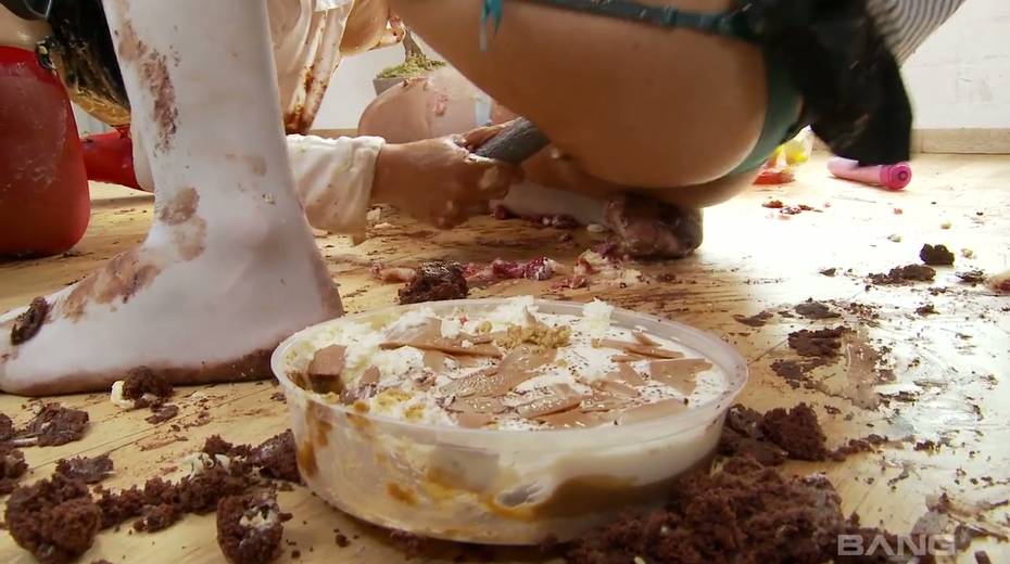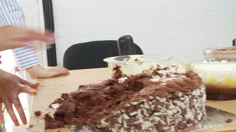Crazy bitches smear the cake all over each other and enjoy toying pussies