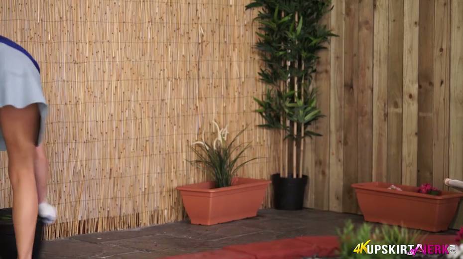 Sexy housewife Laura stands on her fours and shows a great upskirt