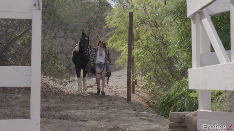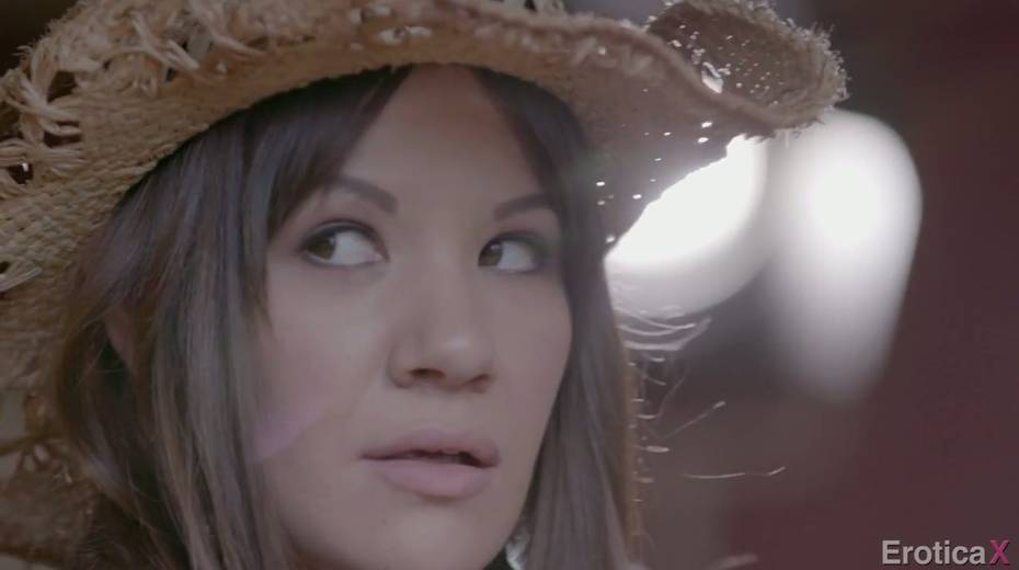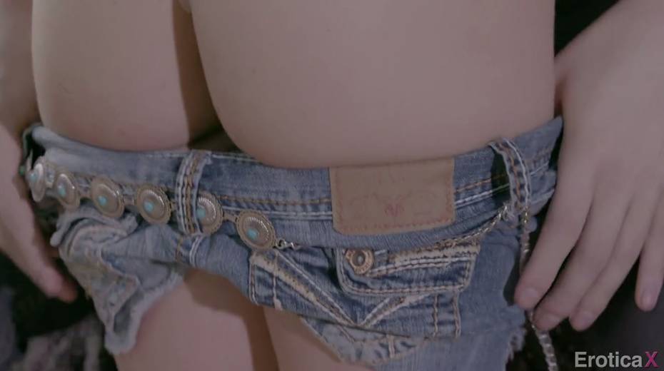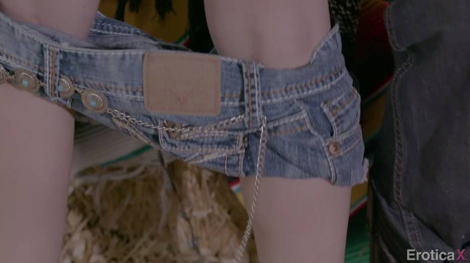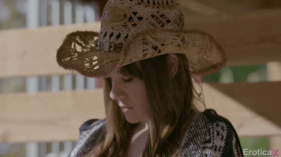 Sexy young Cowgirl Alison Rey enjoys making love in the shed
