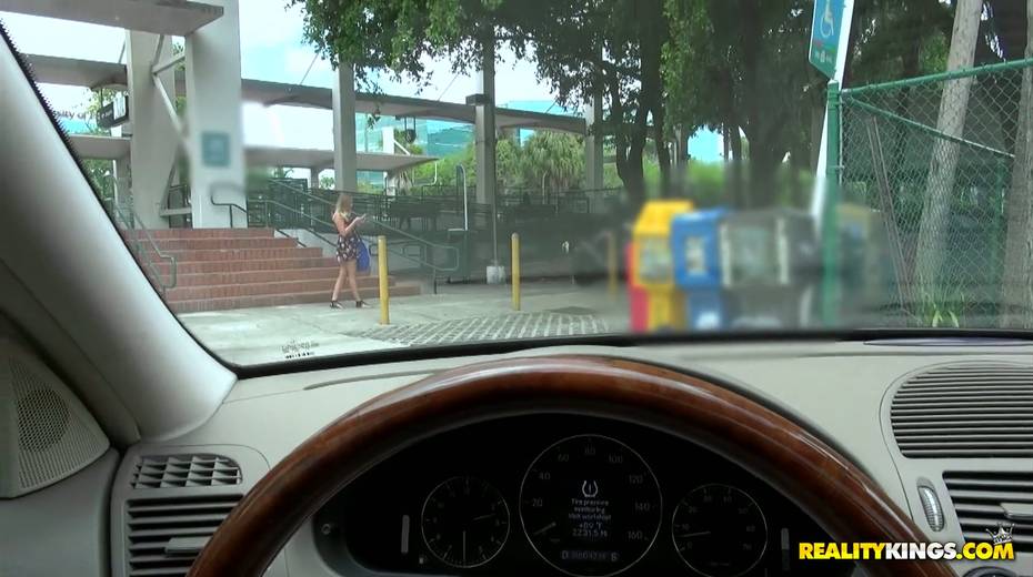 Whorish blonde Scarlett Jennings gets fucked in the car for cash