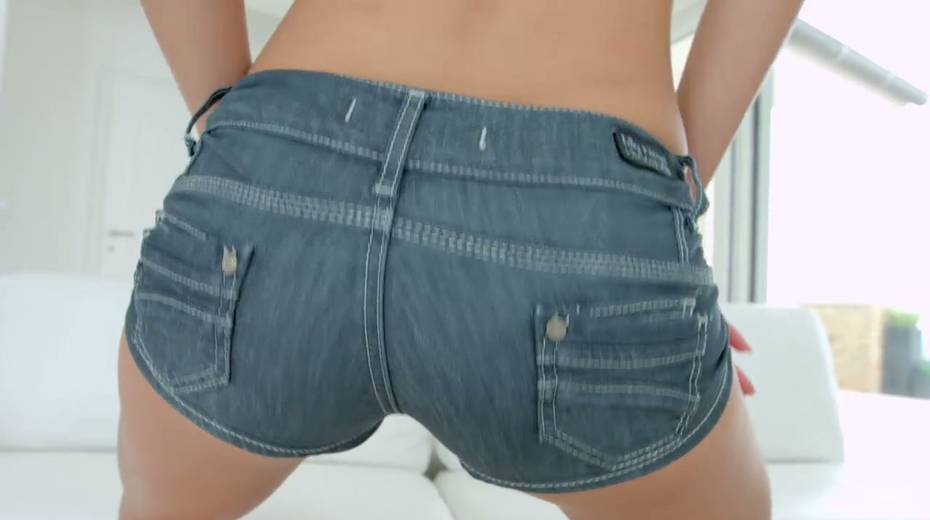 Young brunette Suzy Rainbow shows her alluring ass and sucks dick greedily