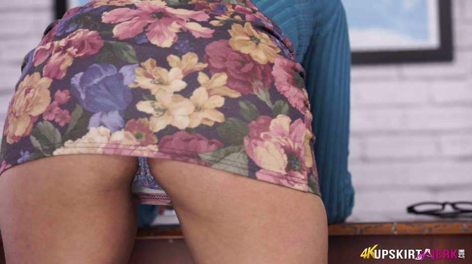 Young secretary in short skirt Fi Fi is flashing her pretty pussy