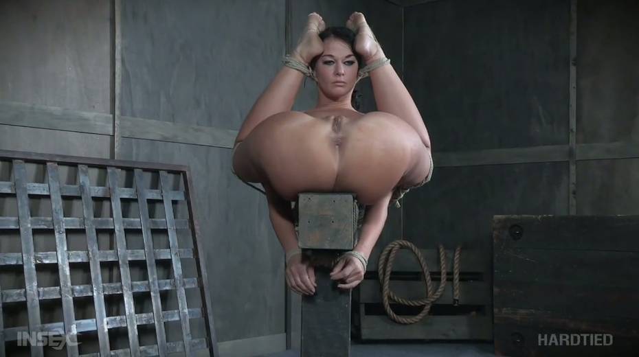 Provocative brunette London River takes metal hook in her anal hole