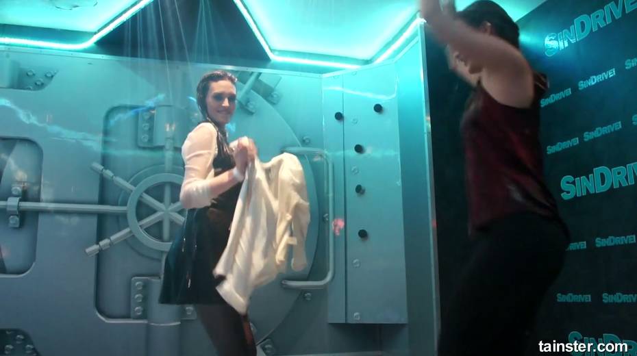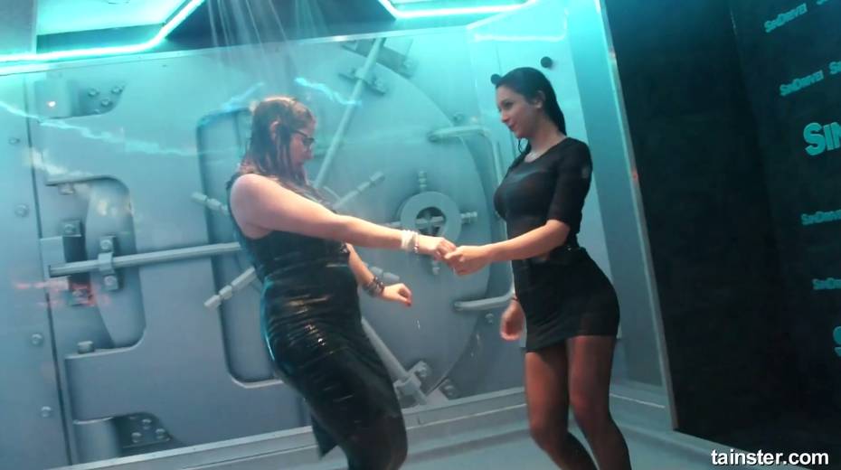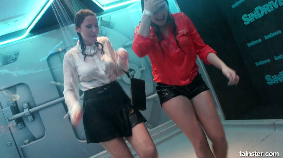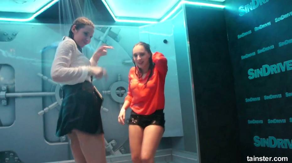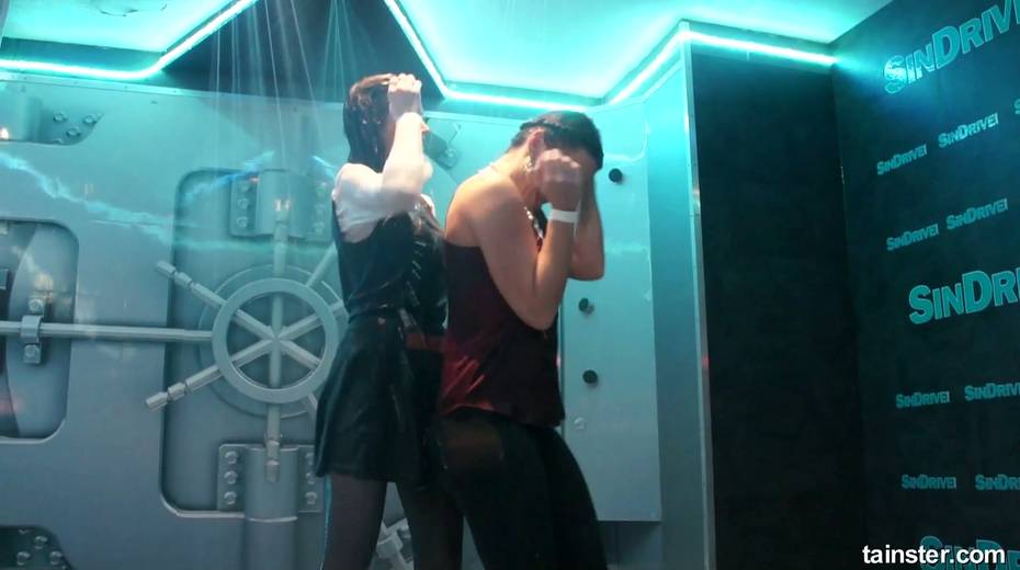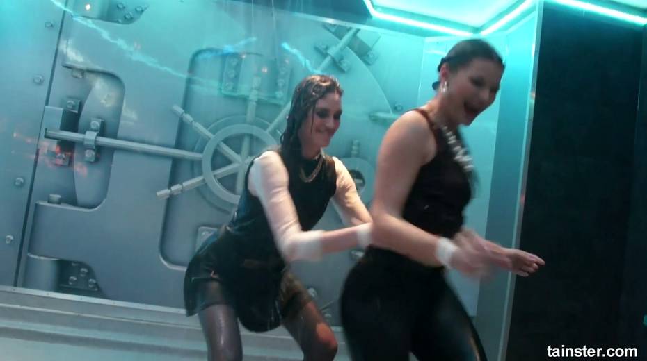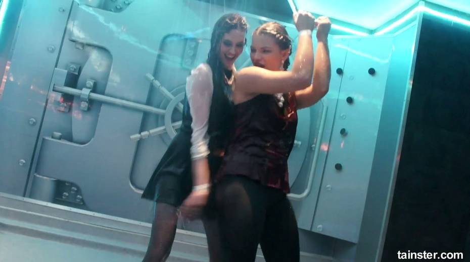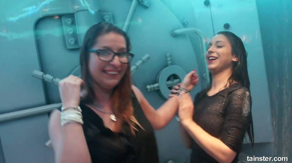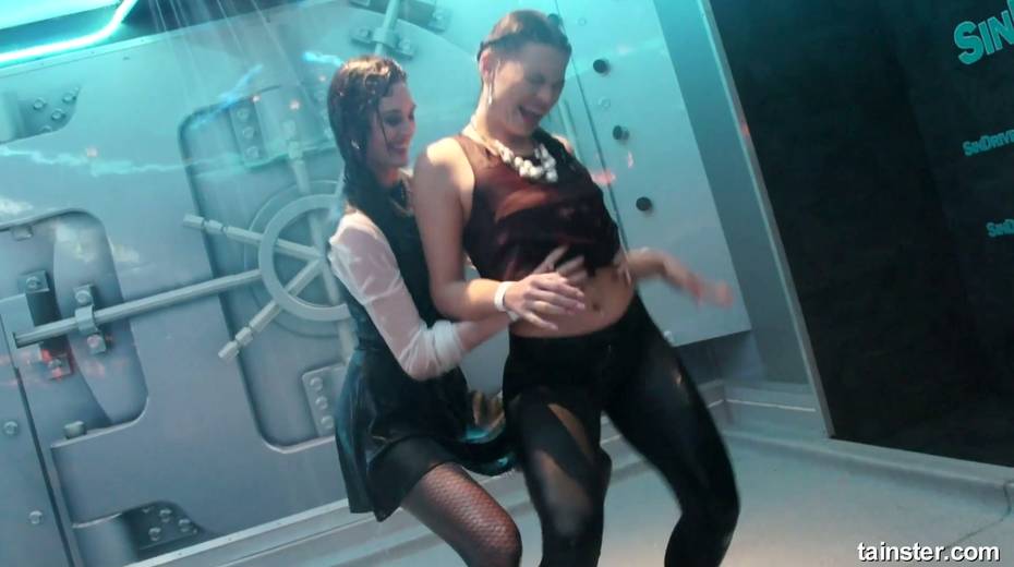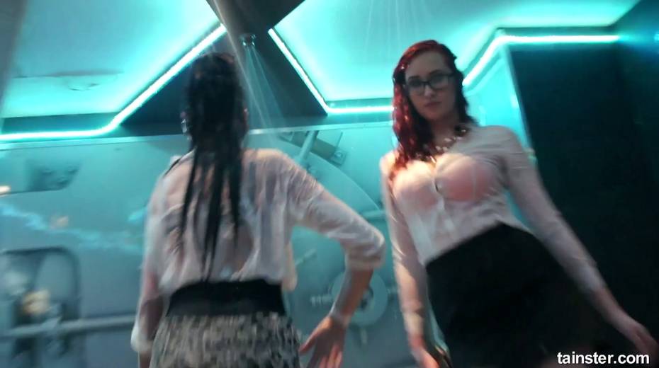 Sex-crazy bitches is dancing under the shower in the night club