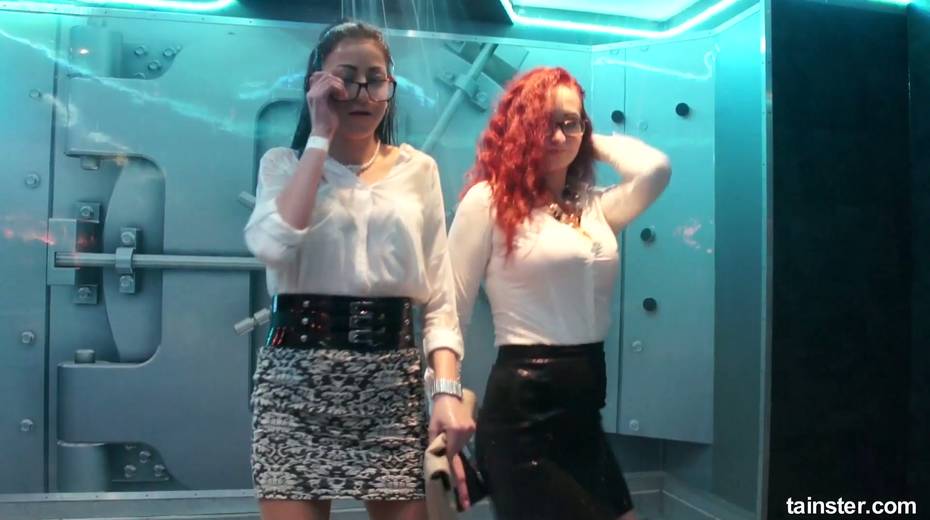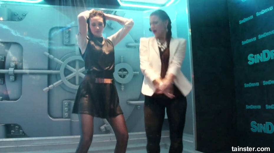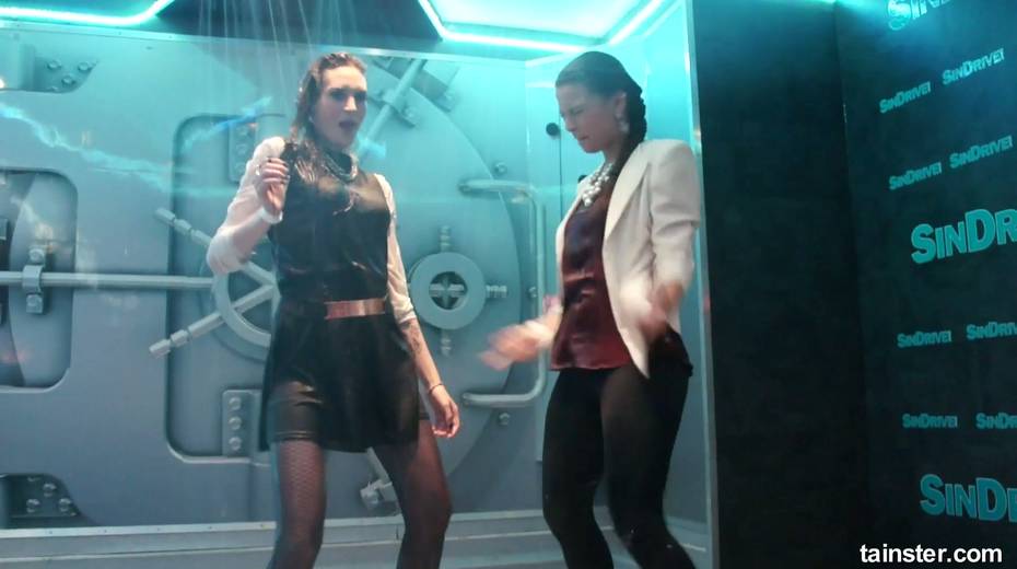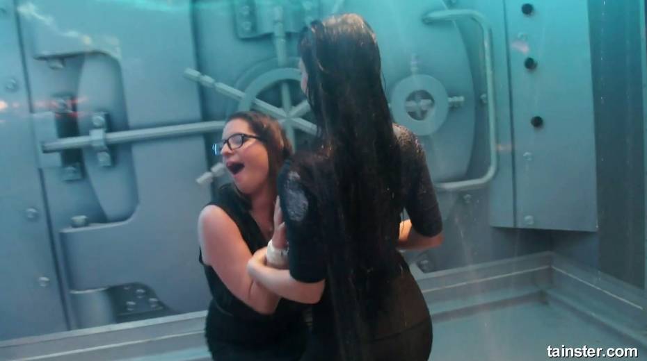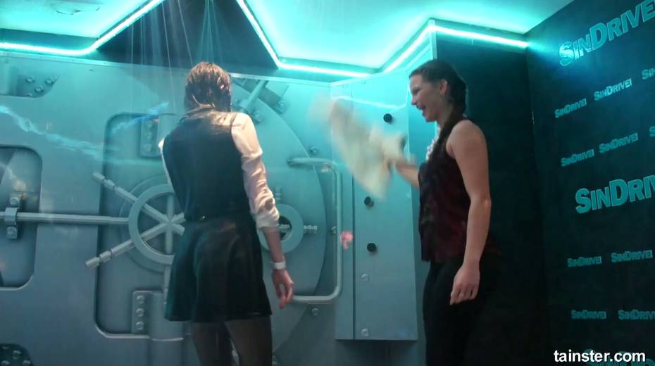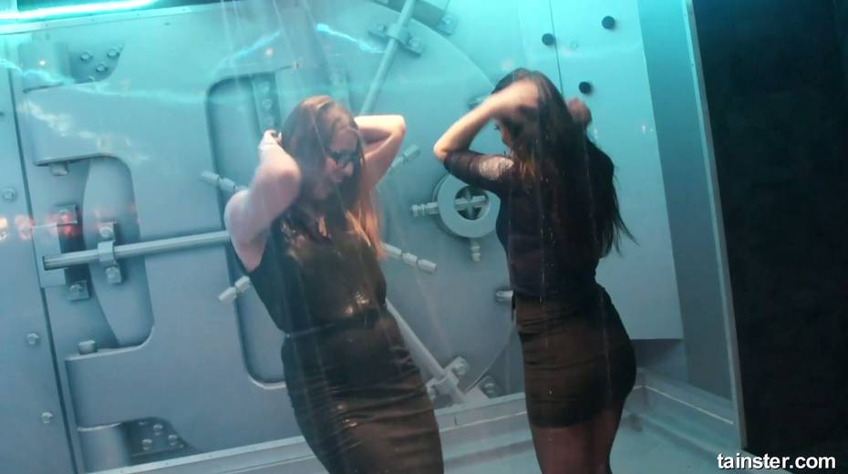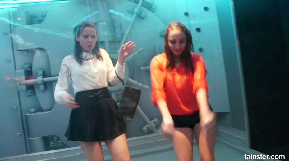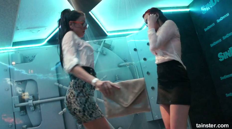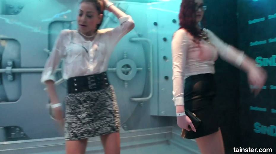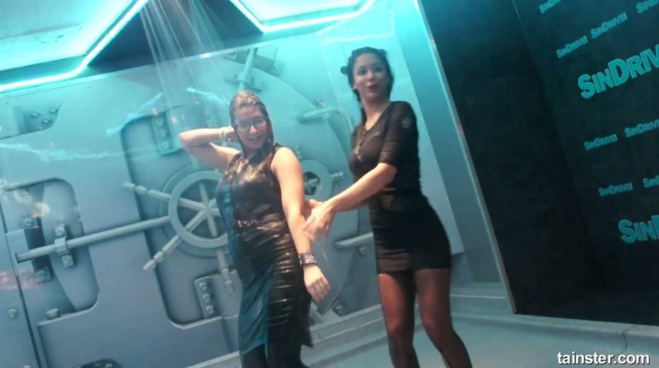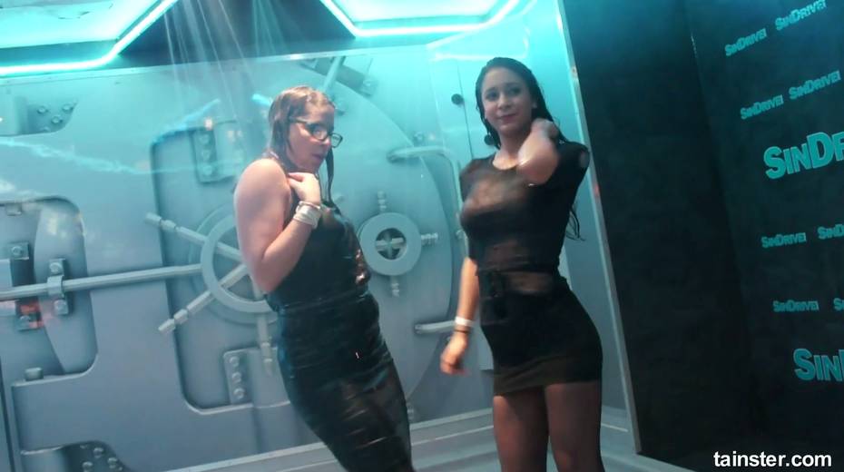 Sex-crazy bitches is dancing under the shower in the night club