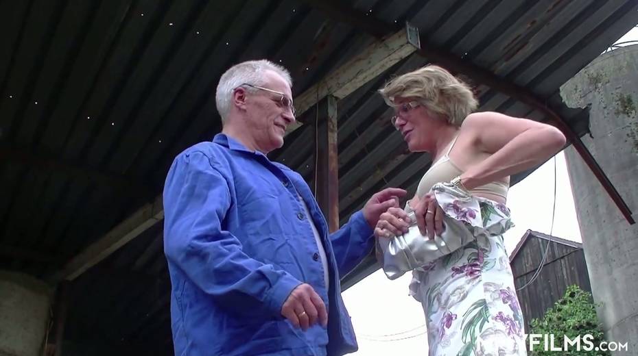 Old bitch Karin seduces farmer and gives him best ever blowjob in his life