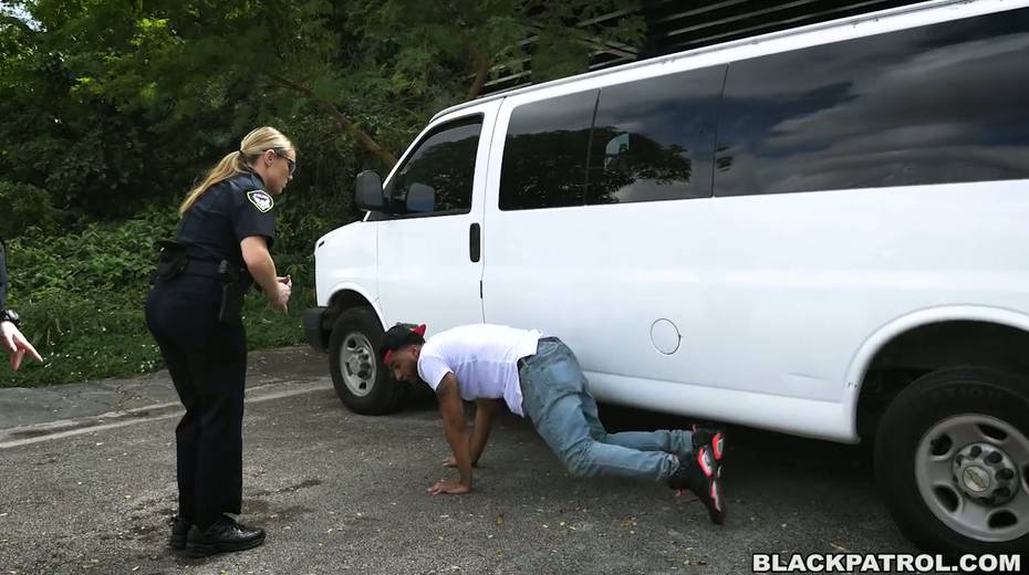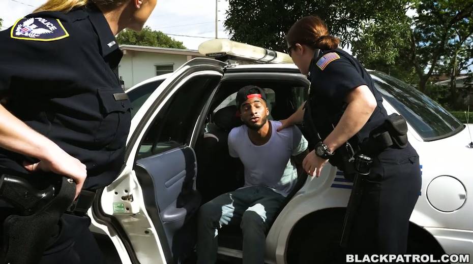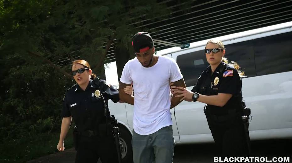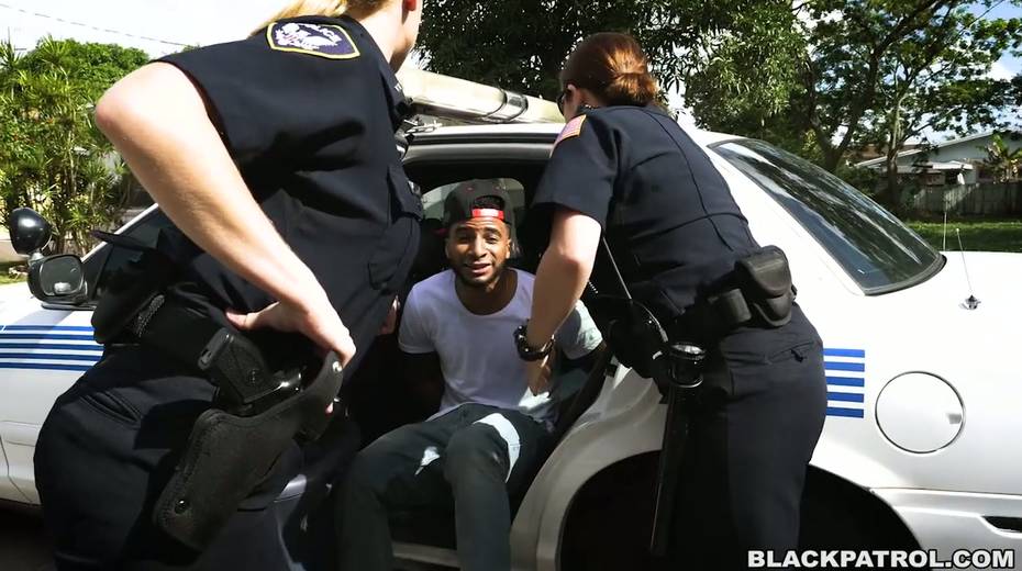Two white chicks wearing police uniform make BBC fuck their fat cunts