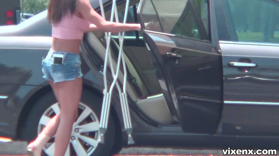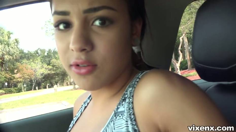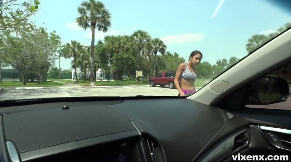 Spoiled babe Nicole Bexley shows her tits in the car and gives her head in the hotel