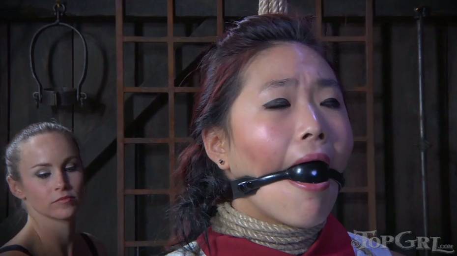 Asian hoochie Bella Rossi gets punished in the dark cold room