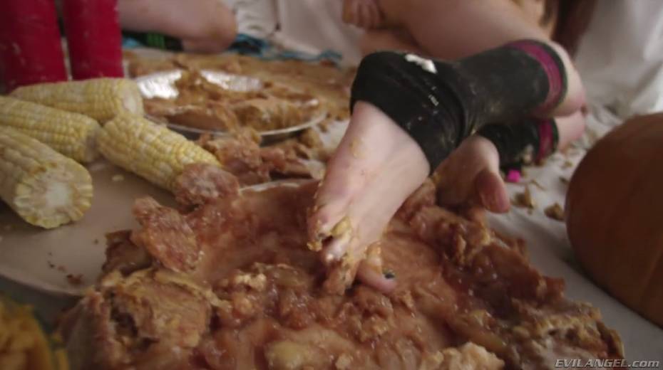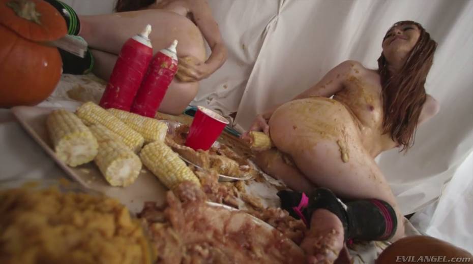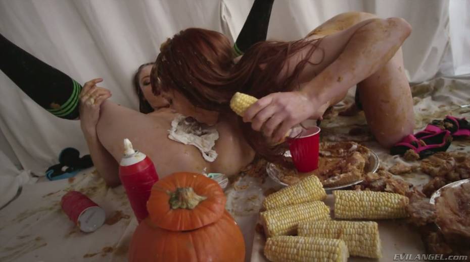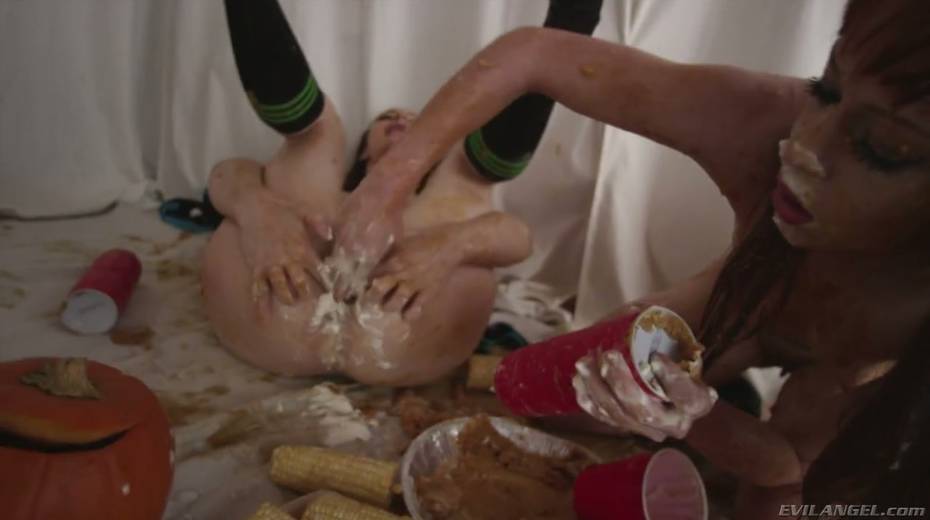 Playful babe Violet Monroe is licking whipped cream from girlfriend's body