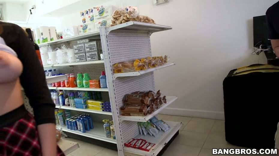 Appetizing juggy babe Ashley Adams is having extreme sex in the super market