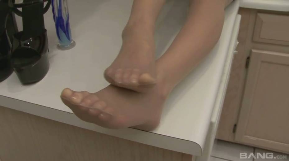 Captivating red haired hottie Faye Reagan is playing with pussy on the kitchen table