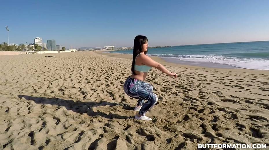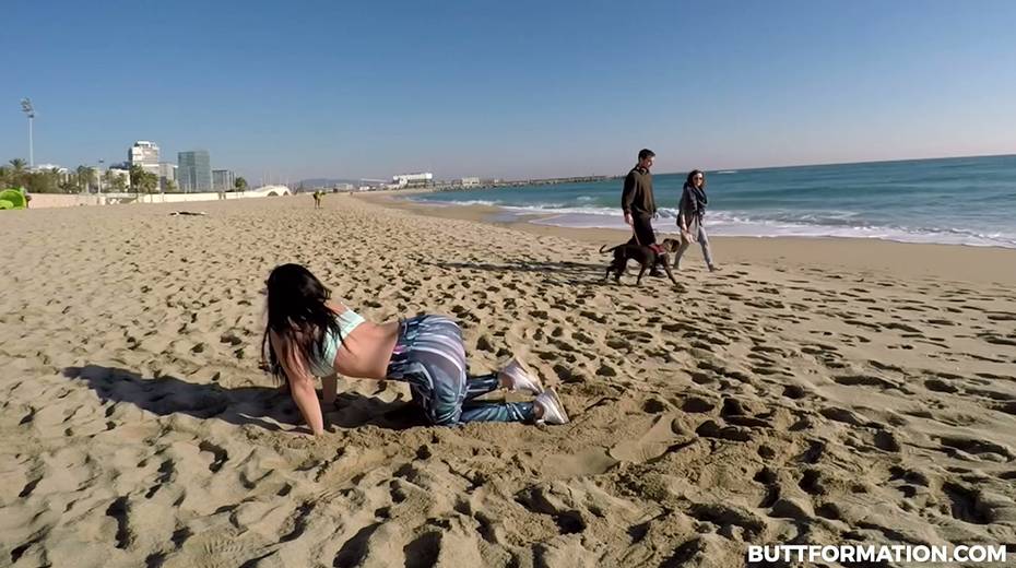 Bootyful babe Alba De Silva is dung butt formation exercises on the beach
