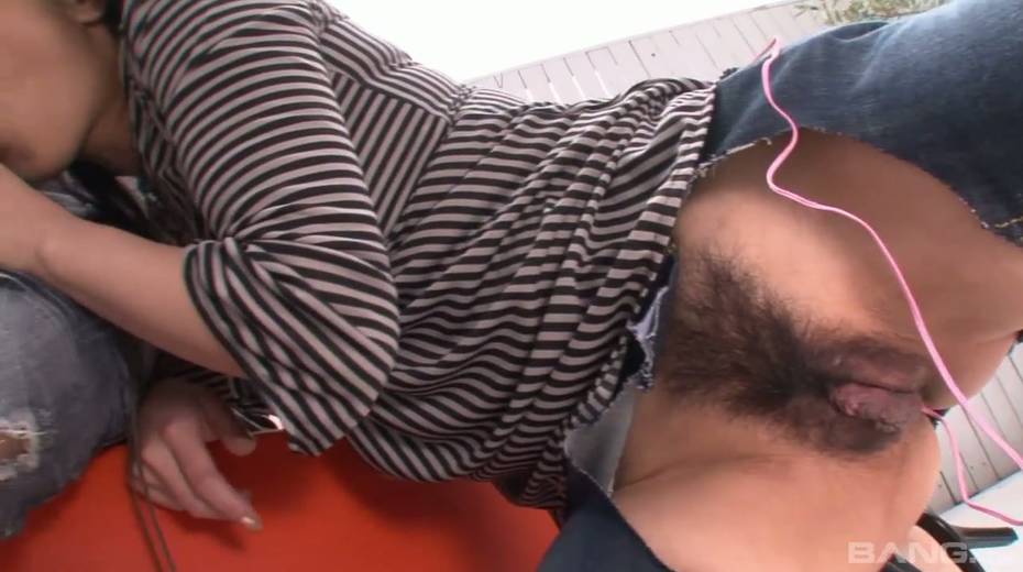 Japanese bitch with hairy cunt gives her head and pisses after reaching an orgasm