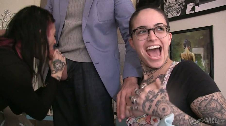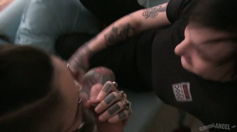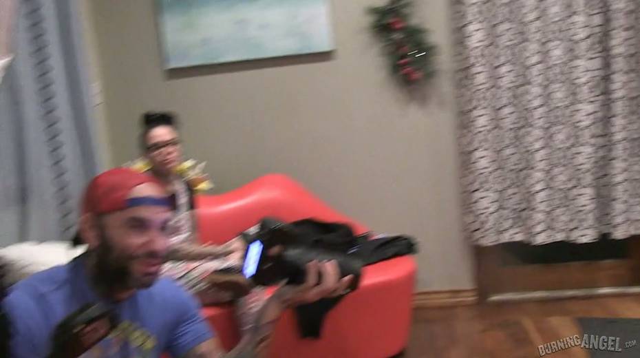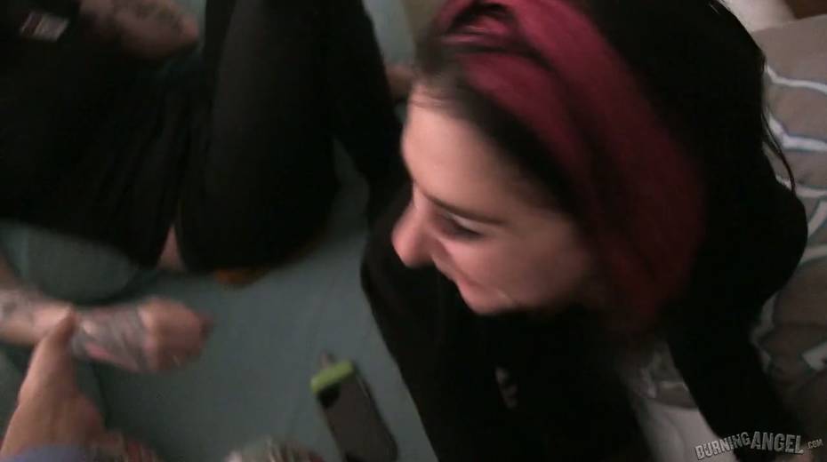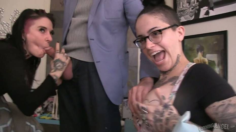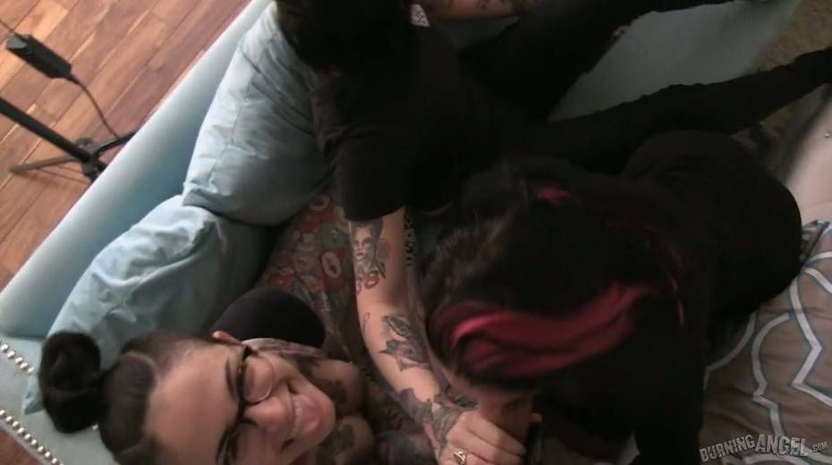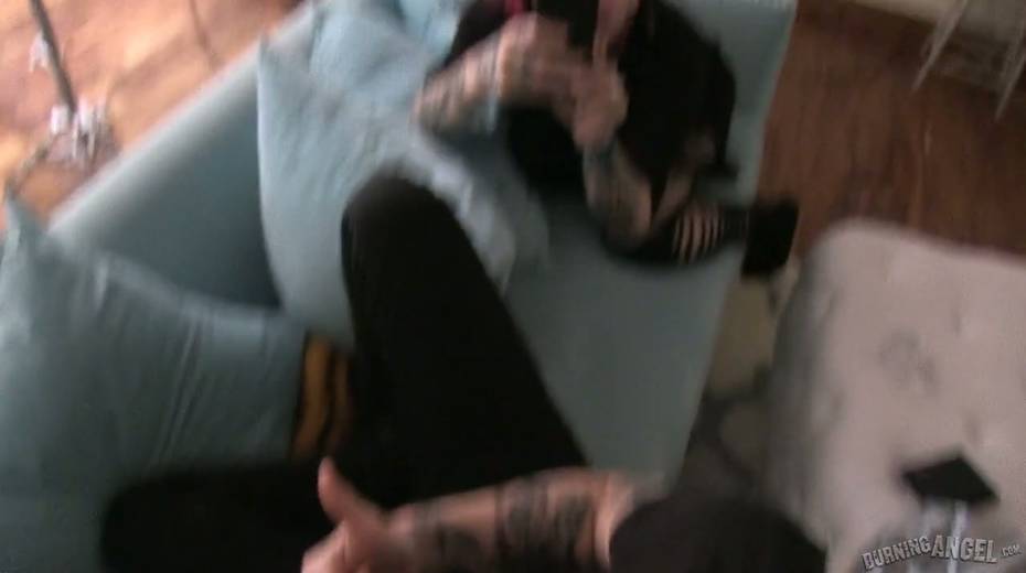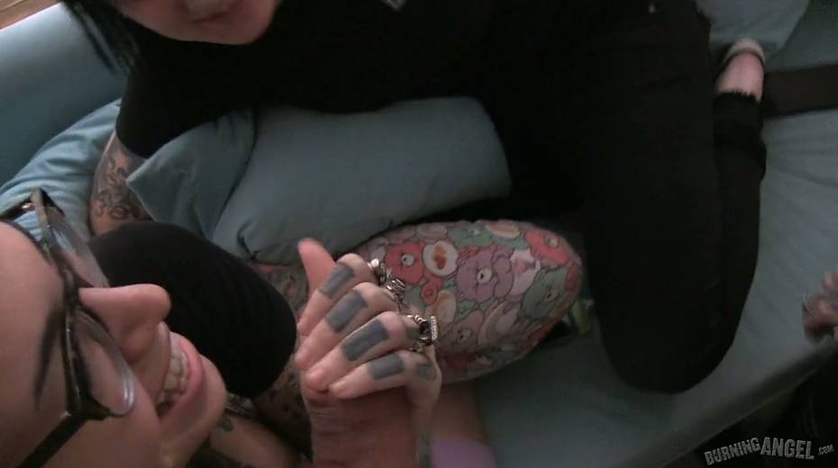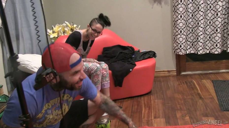 Tattooed hottie Joanna Angel performs exciting behind the scene video