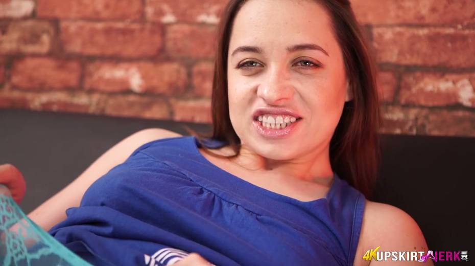 Seductive bitch Olga Cabaeva shows upskirt and masturbates her yummy pussy