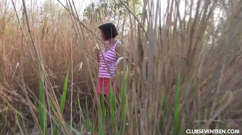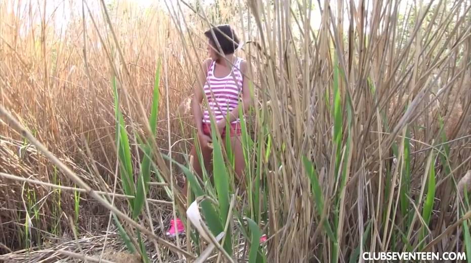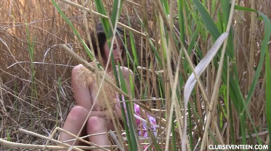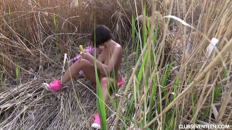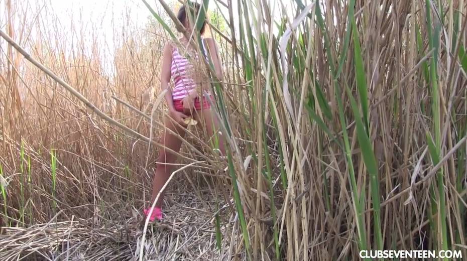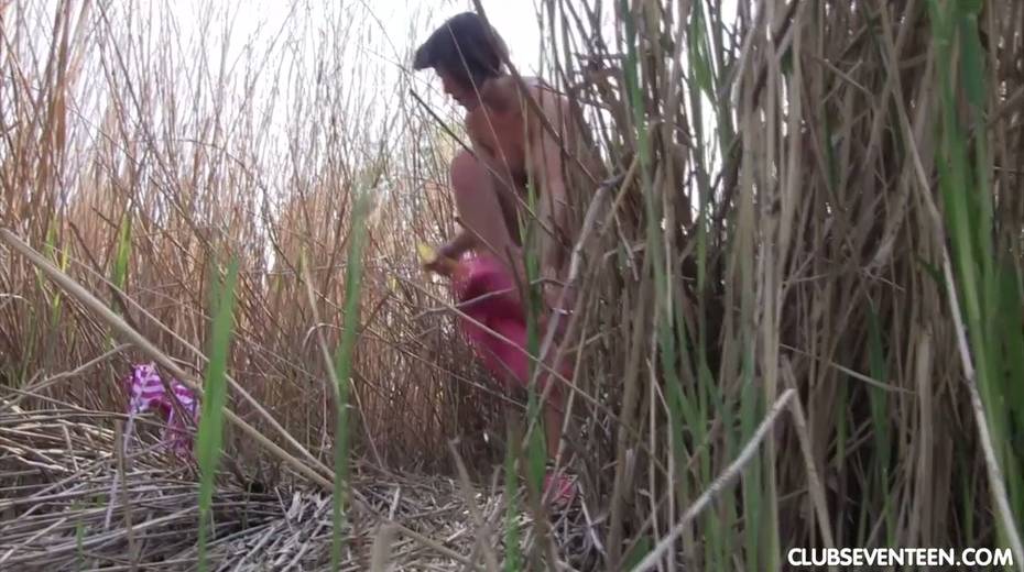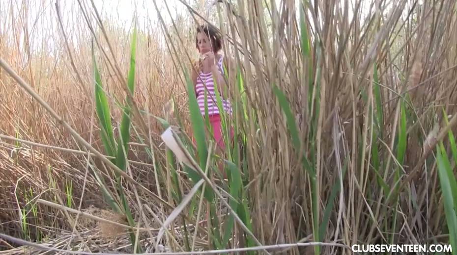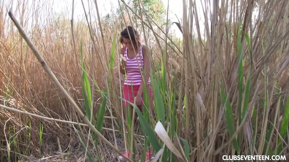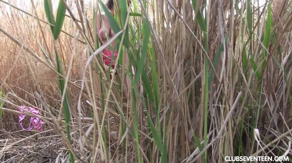 Pretty hot busty babe Anabelle is fucking her self in the bushes