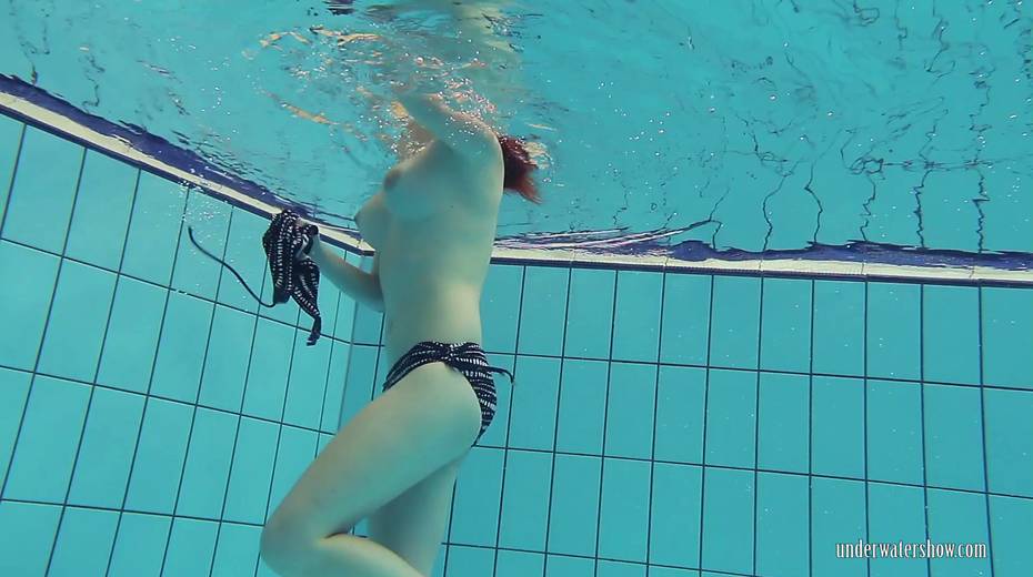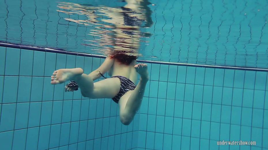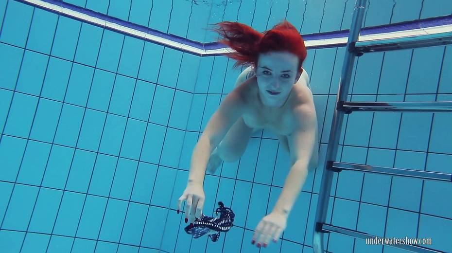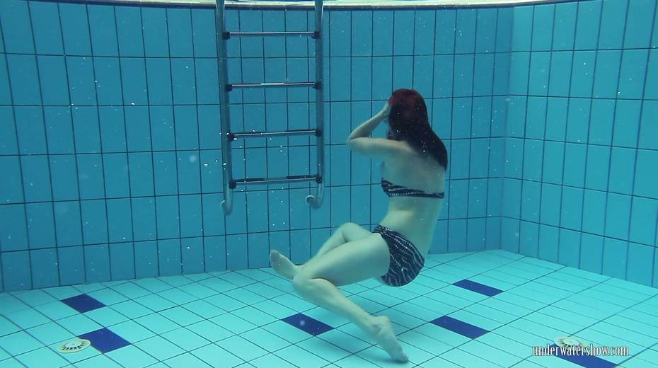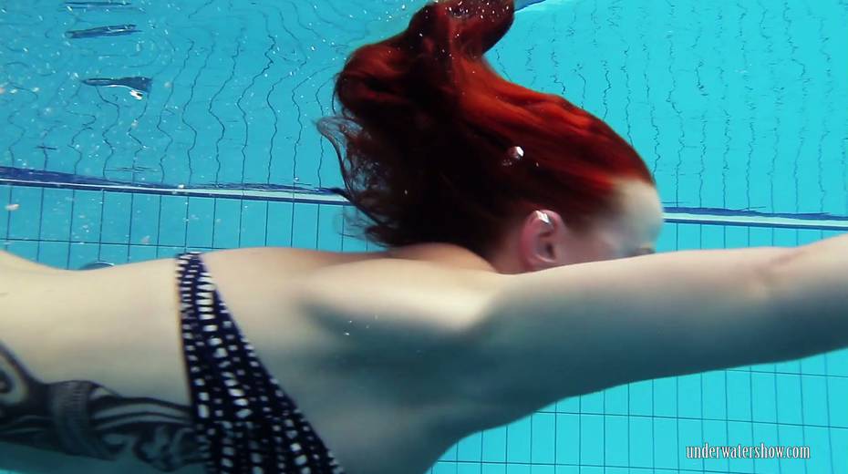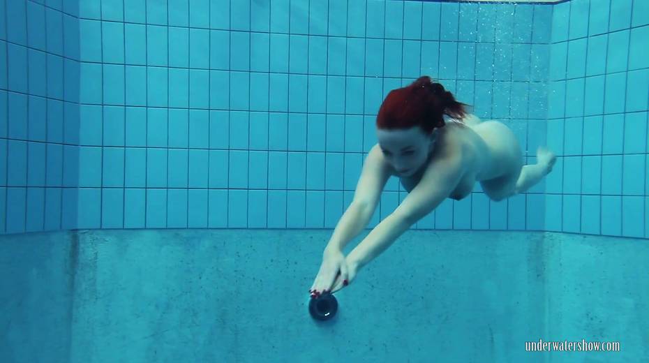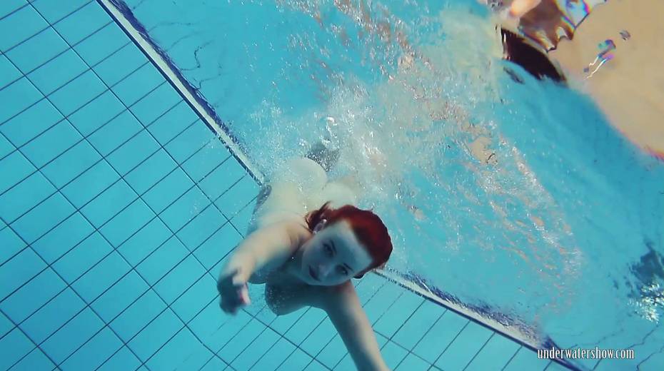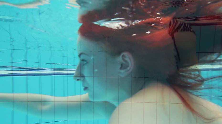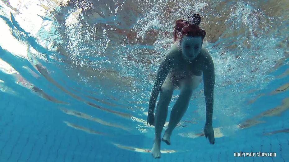 Yummy red haired babe Katrin Privsem is swimming under the water