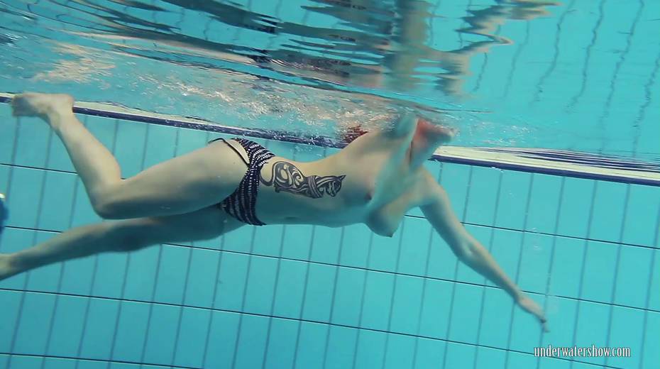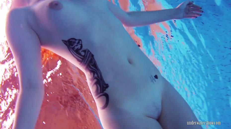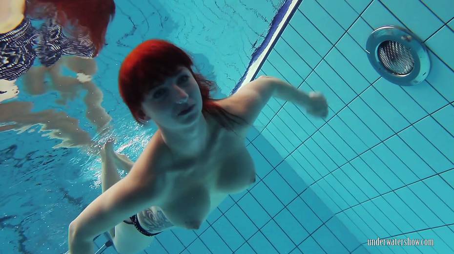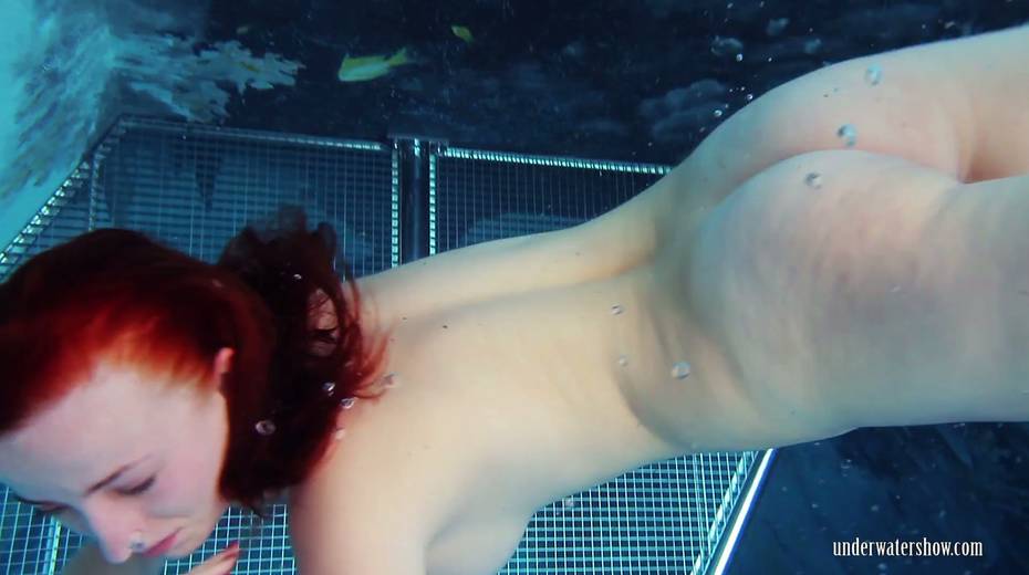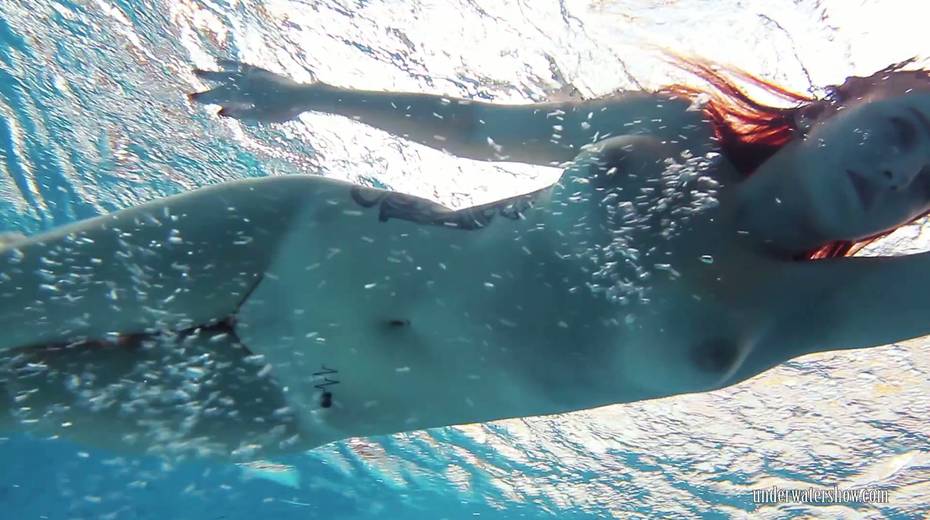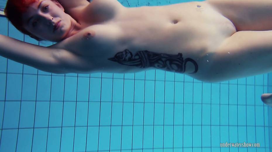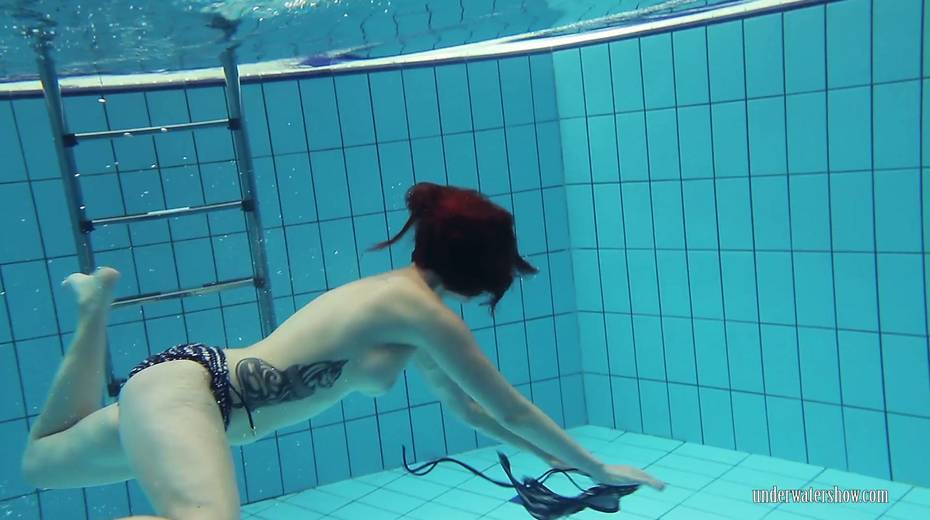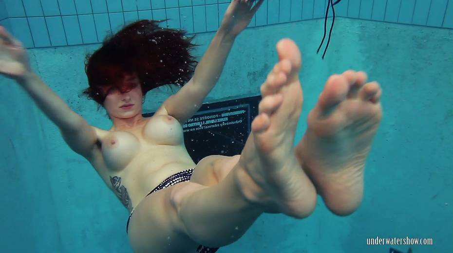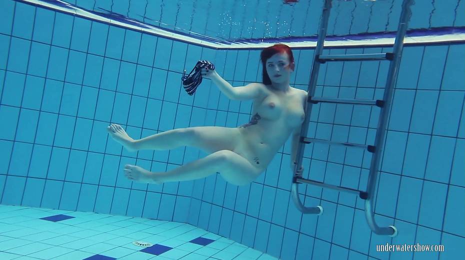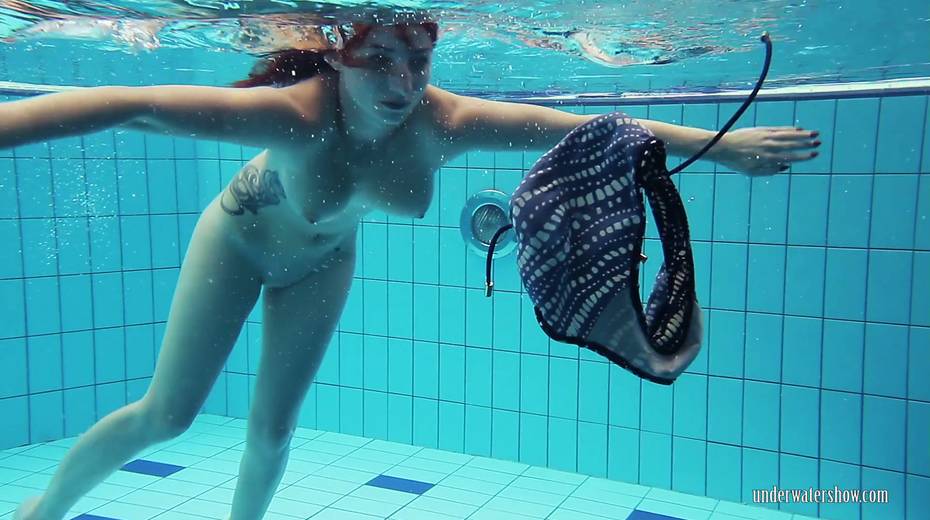 Yummy red haired babe Katrin Privsem is swimming under the water