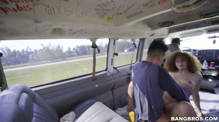 Stranger fucks all holes of curly chick Mariah Banks in the van