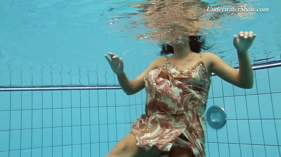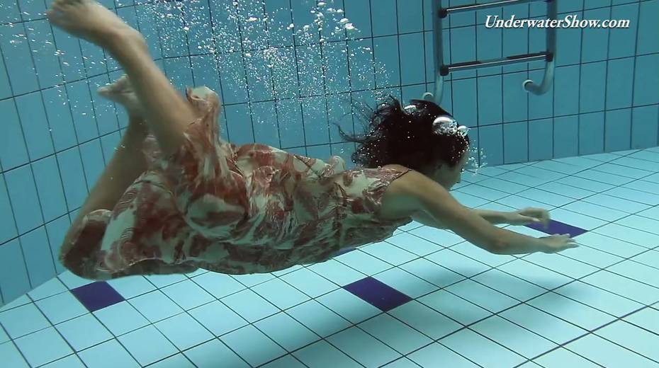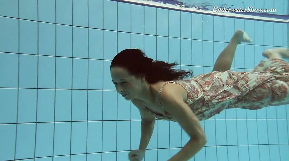 Yummy swimmer Krasula Fedorchuk is stripping under the water