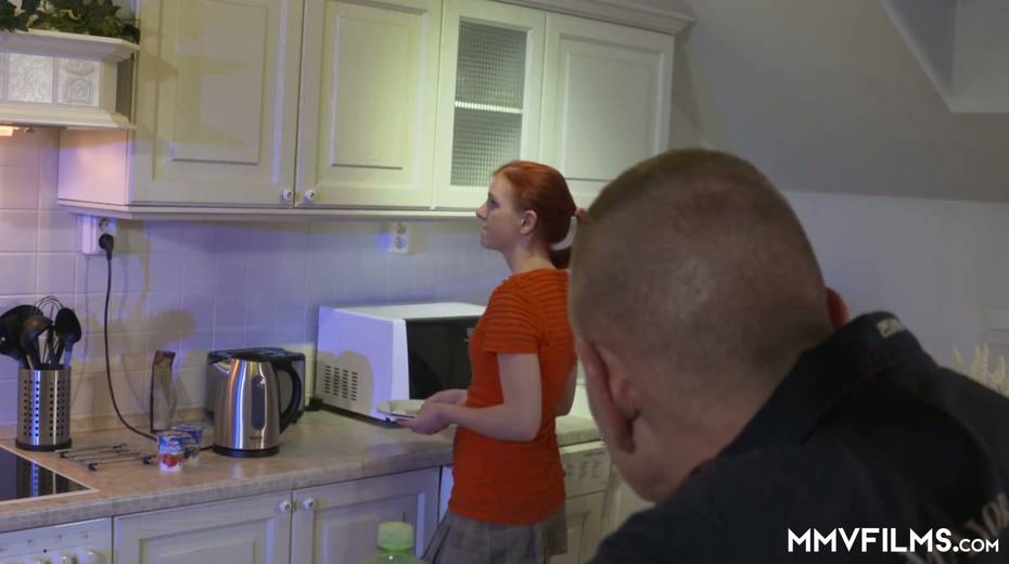 Pretty red head is impaled on heavy aggressive dick