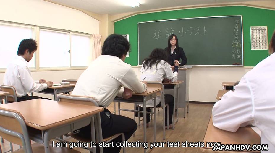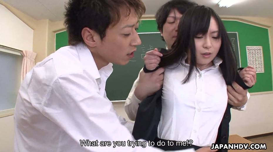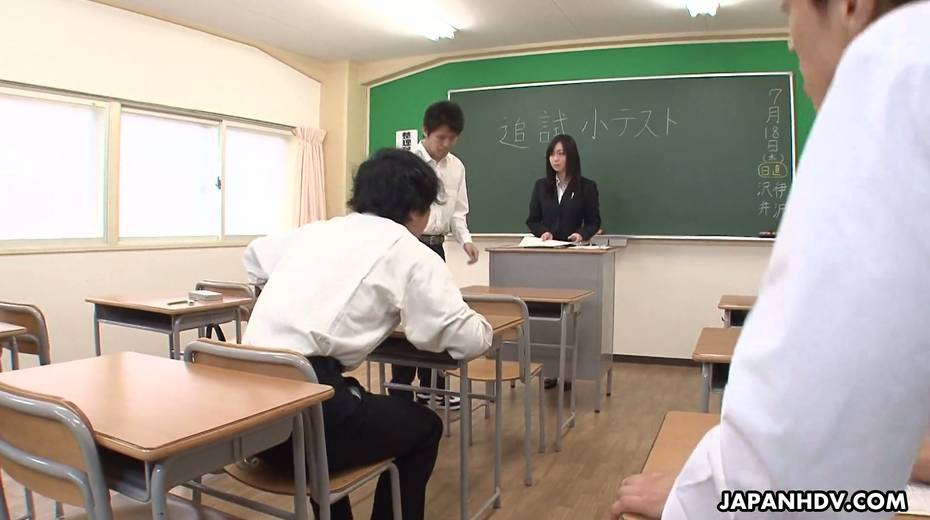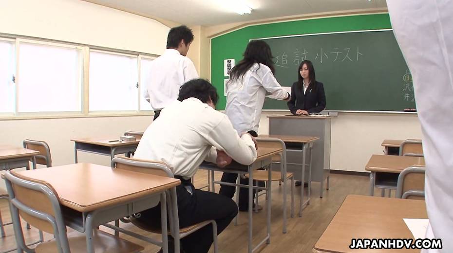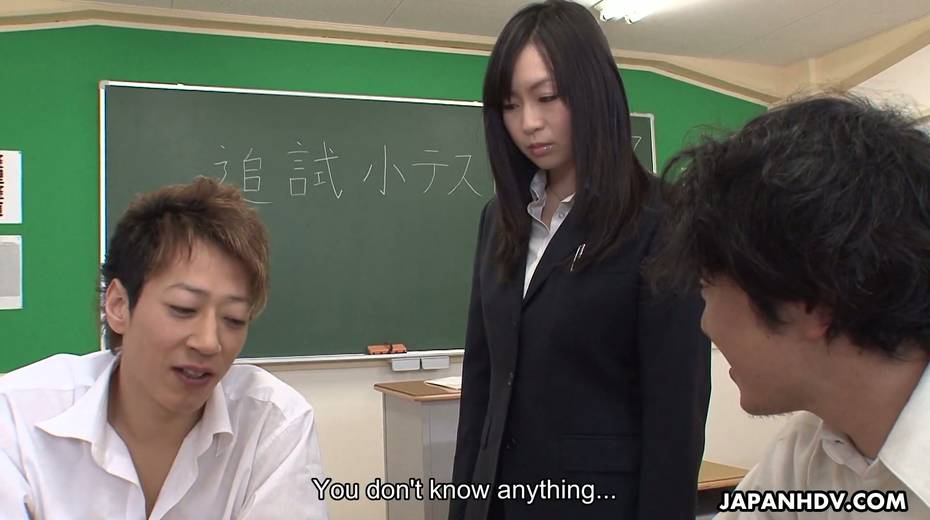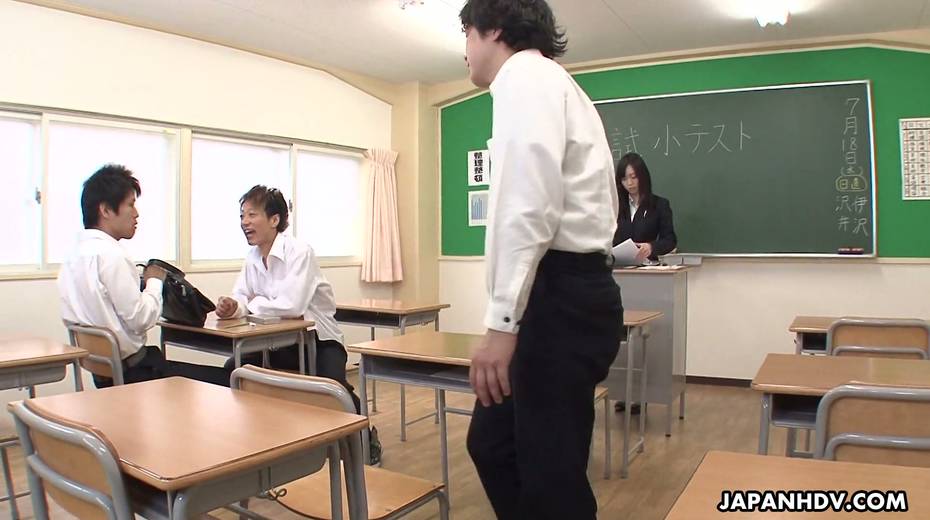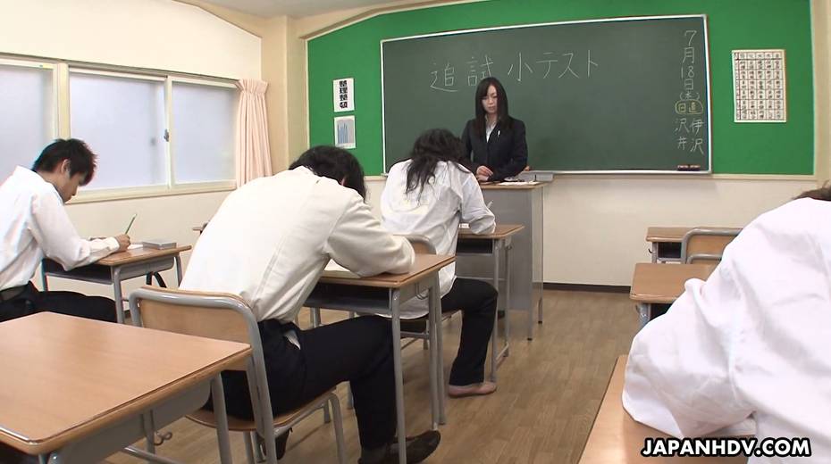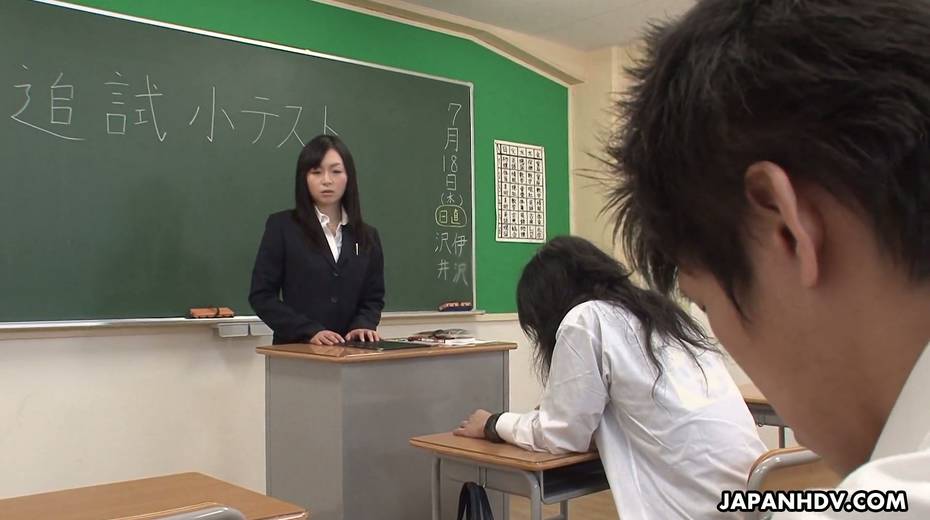 Yummy Japanese teacher Nozomi Hazuki is fucked hard by several perverted students