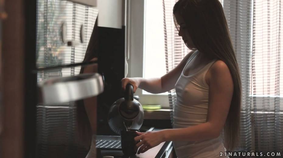 Natural babe Cassie Right enjoys having sex early in the morning